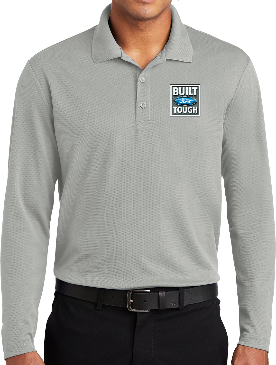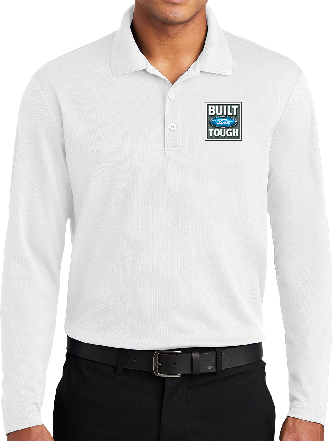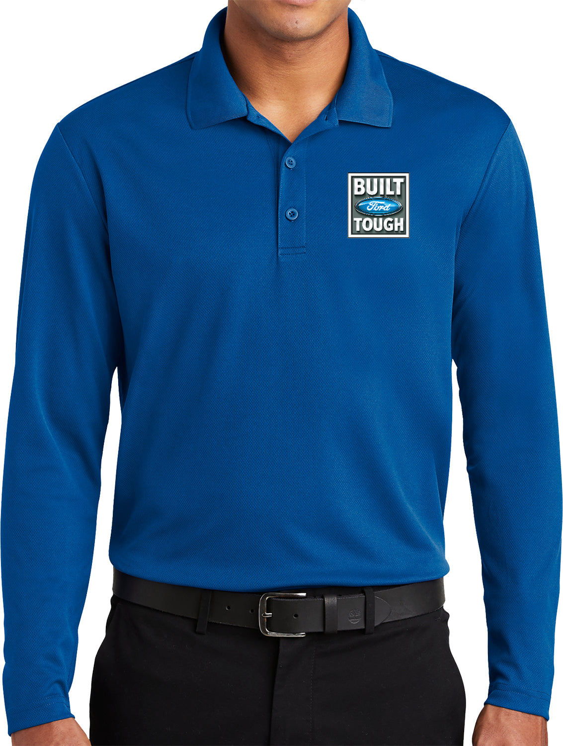 • A mens long sleeve polo shirt featuring the Built Ford Tough logo