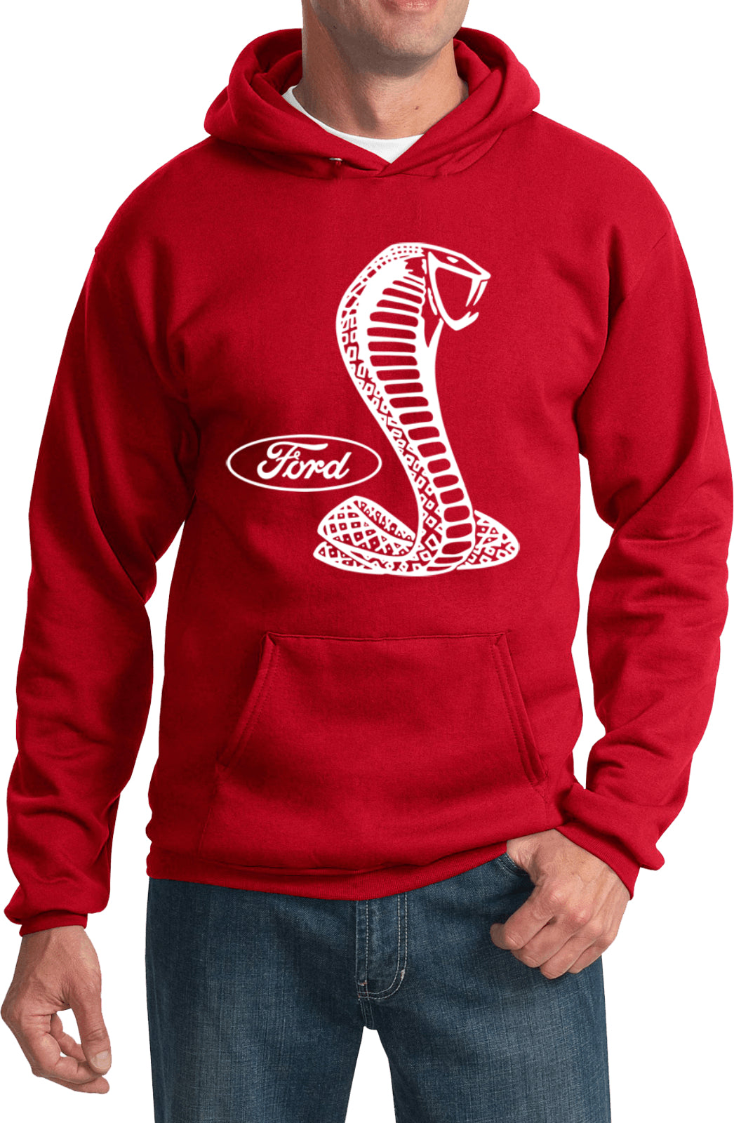 - A pullover hoodie featuring the Ford Mustang Cobra logo
