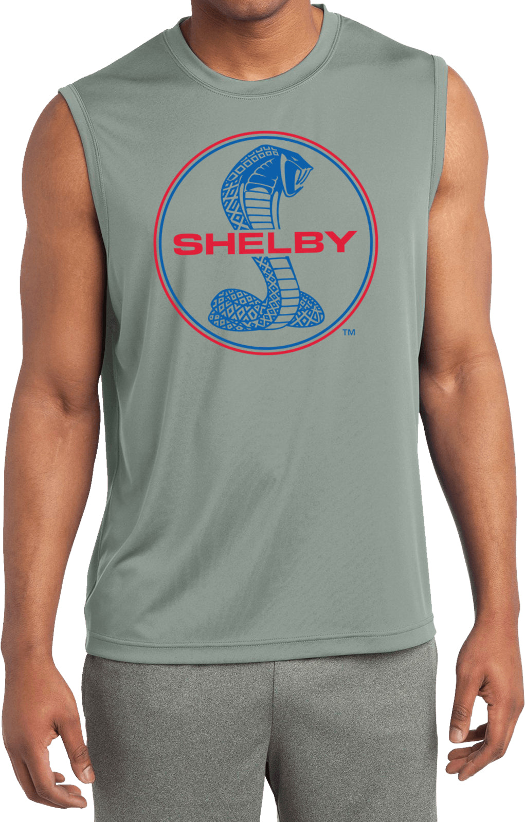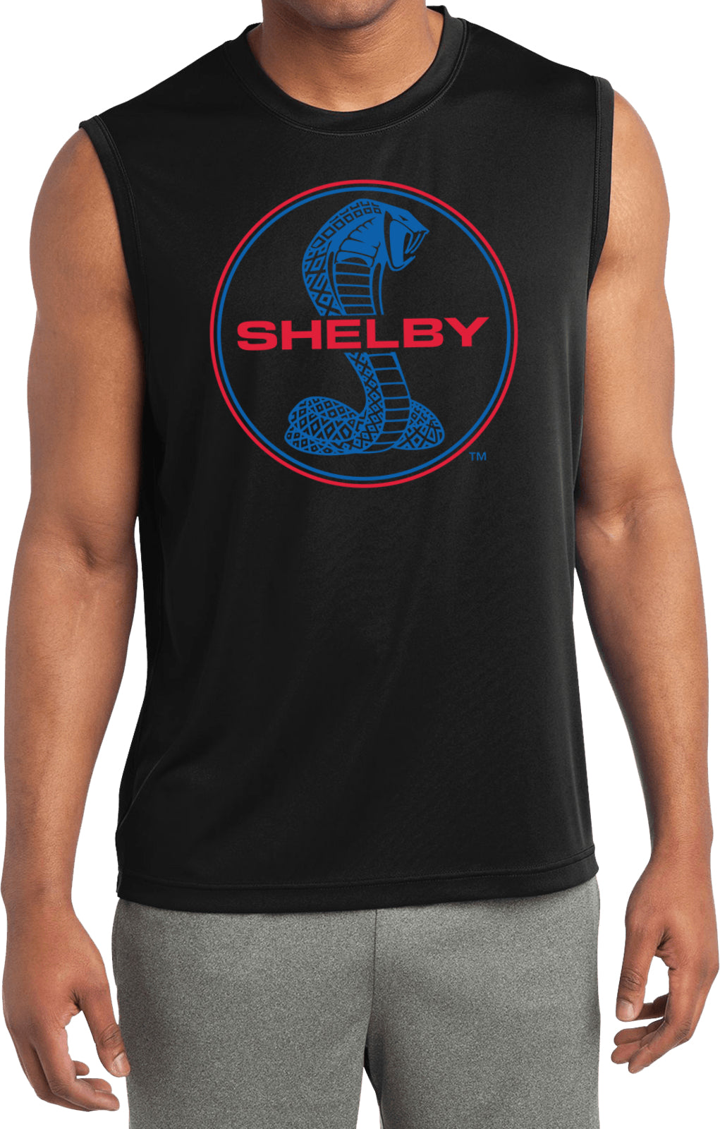 Ford Mustang Shirt Shelby Blue and Red Logo Sleeveless Competitor Tee