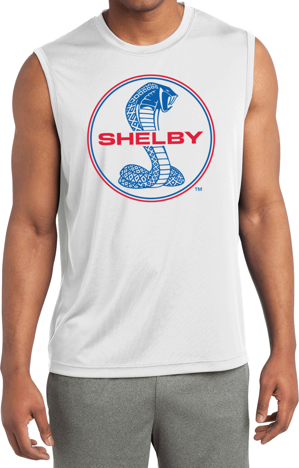 - A mens dry wicking muscle shirt featuring the Ford Mustang Shelby logo
