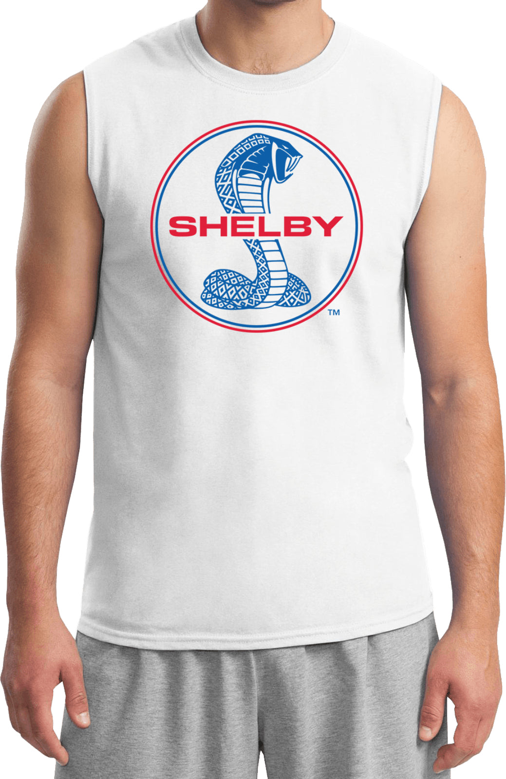 - A mens sleeveless shirt featuring the Ford Mustang Shelby logo