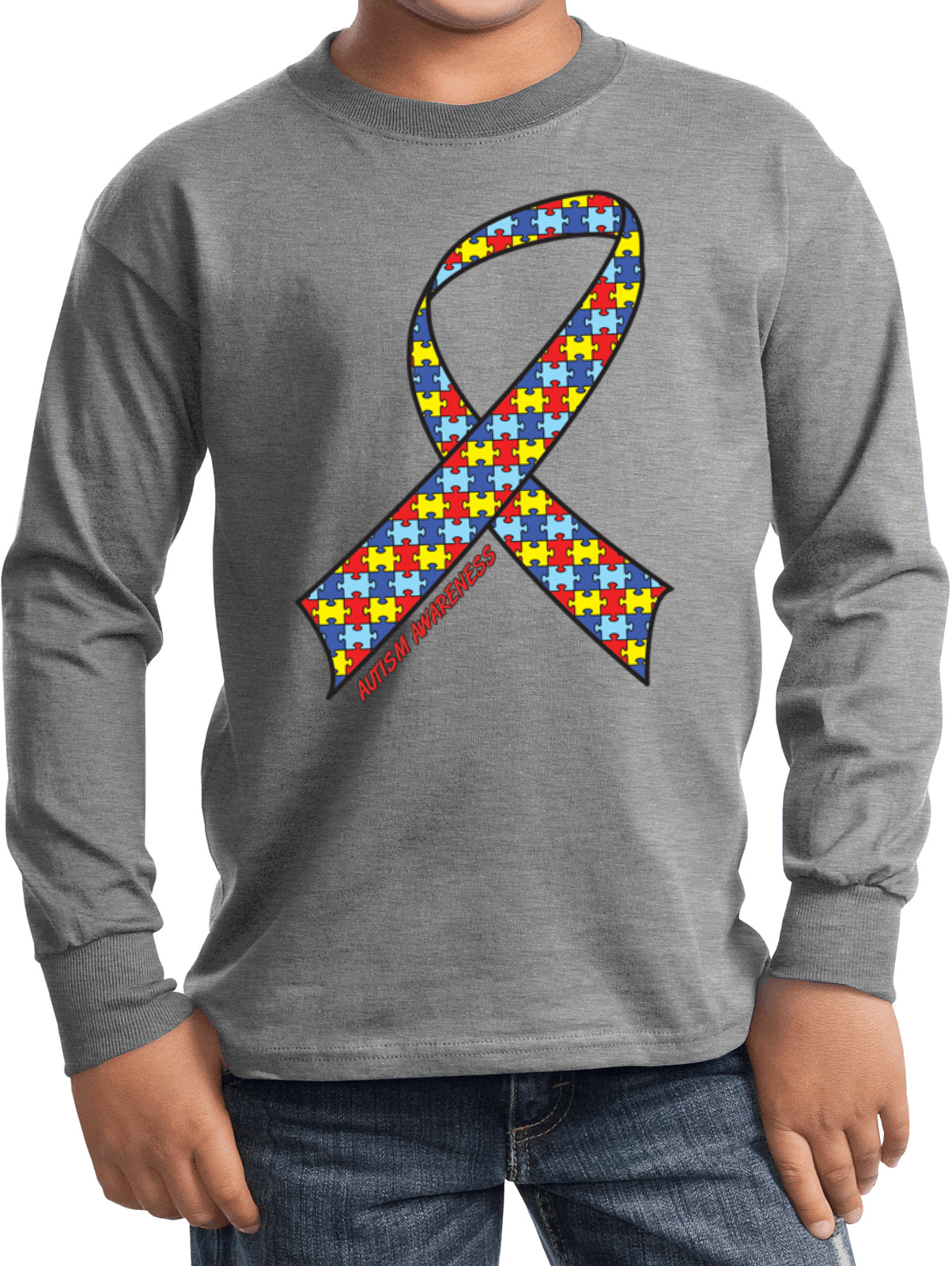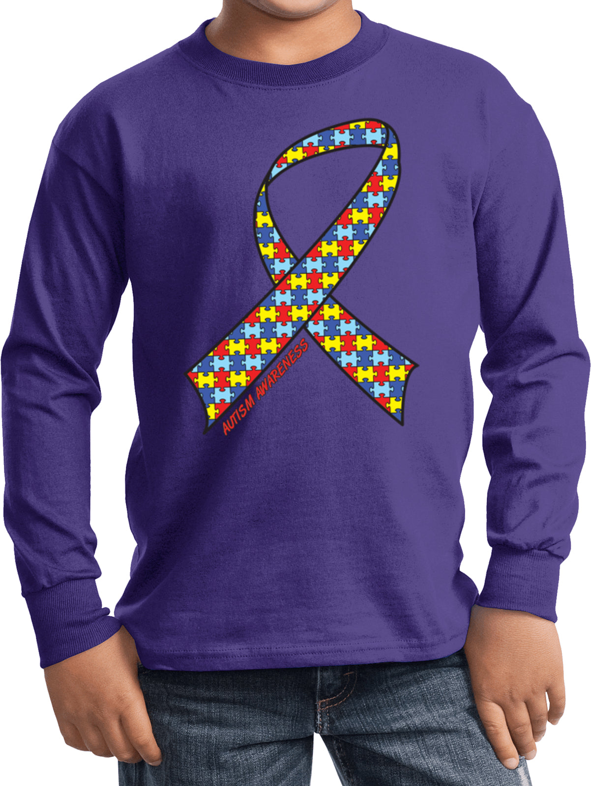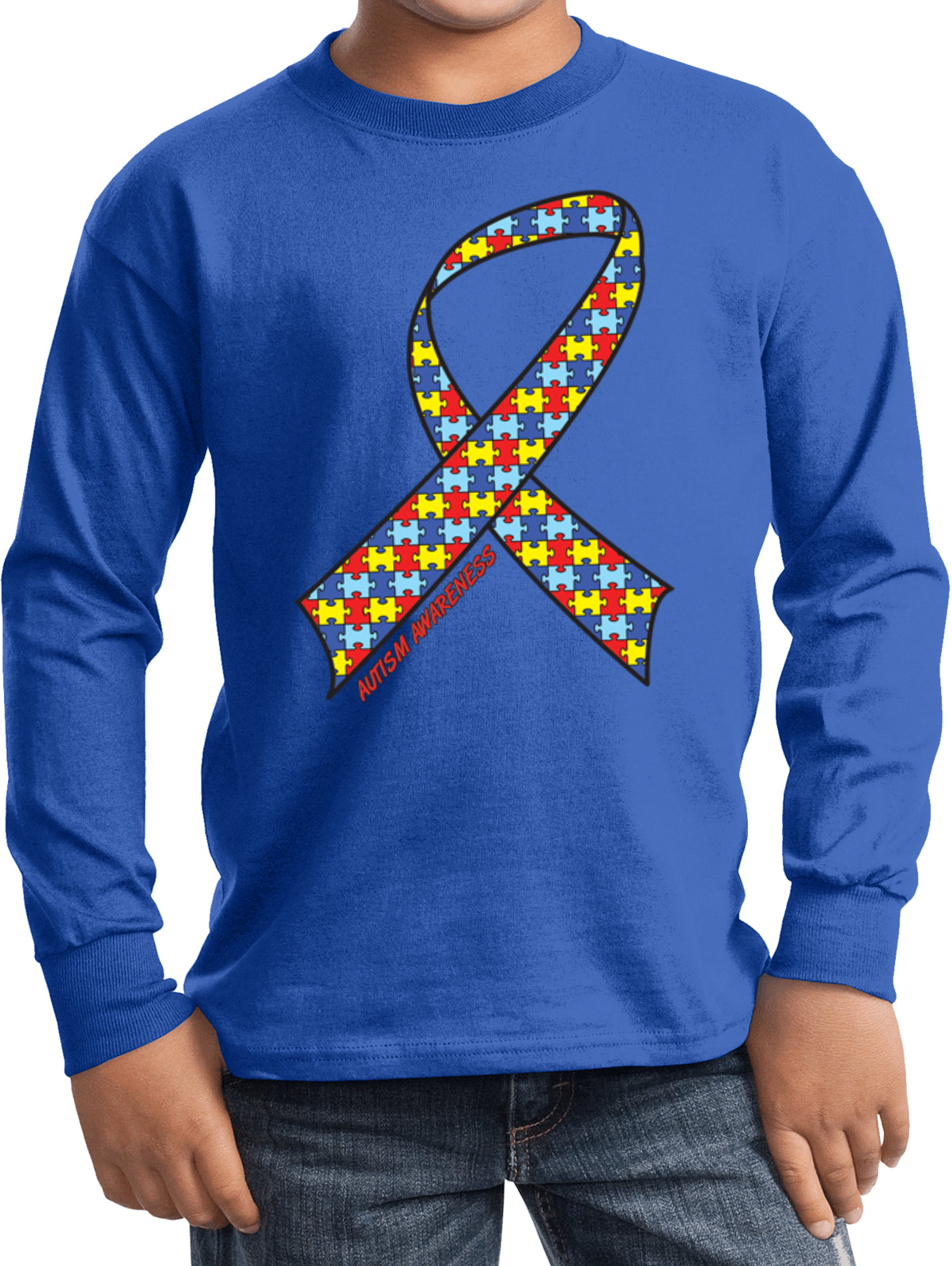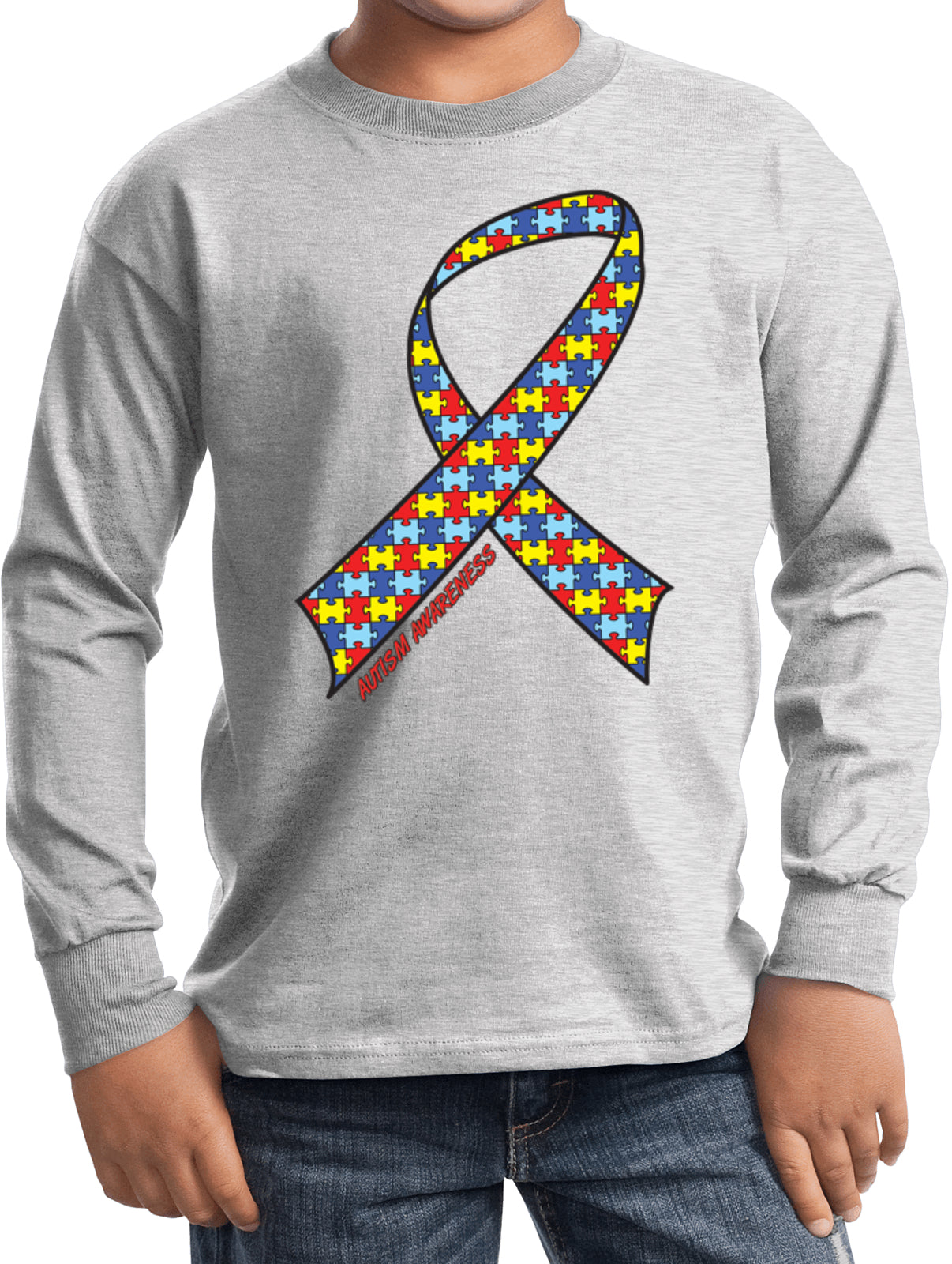 - A youth long sleeve shirt featuring an Autism Awareness Puzzle Ribbon
