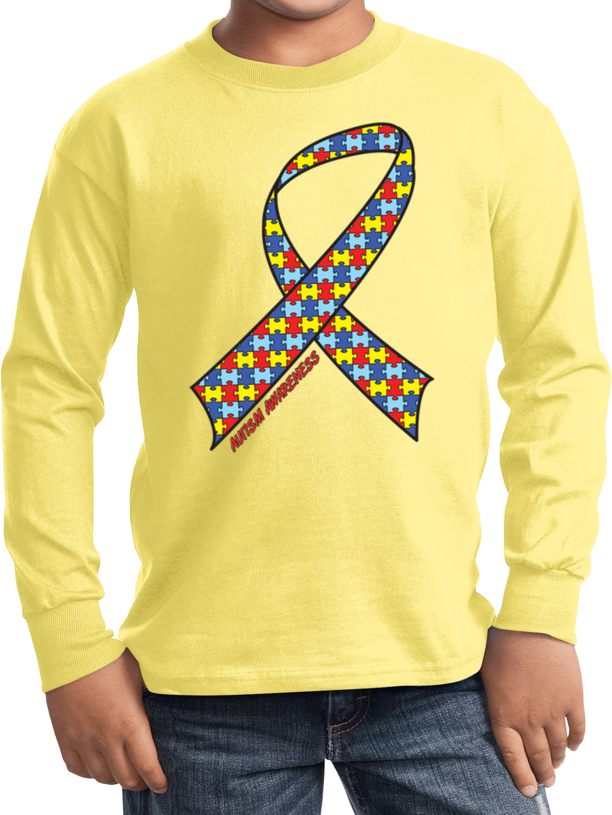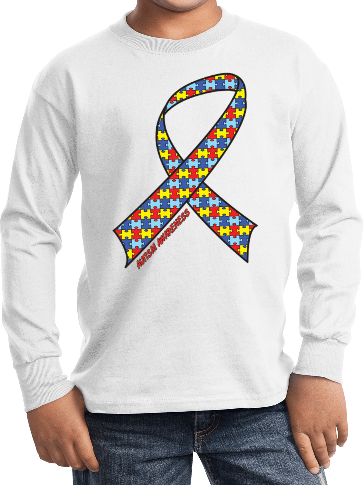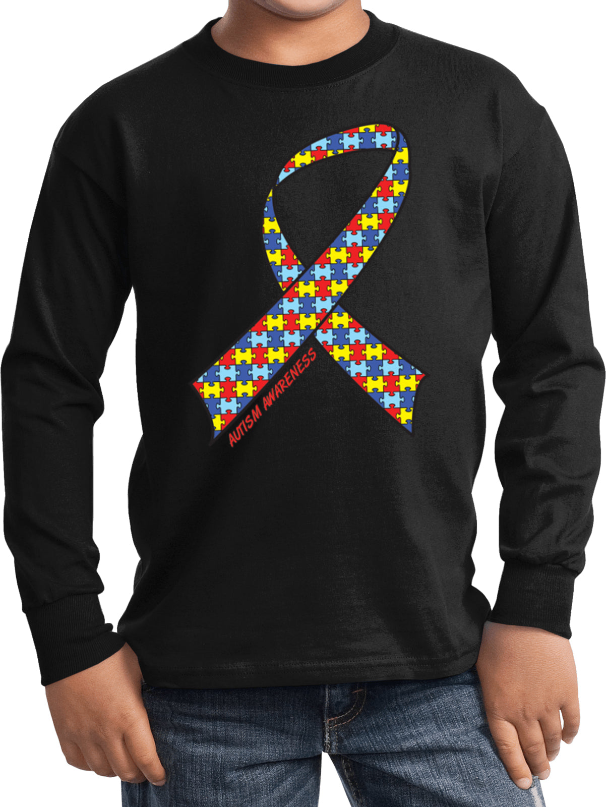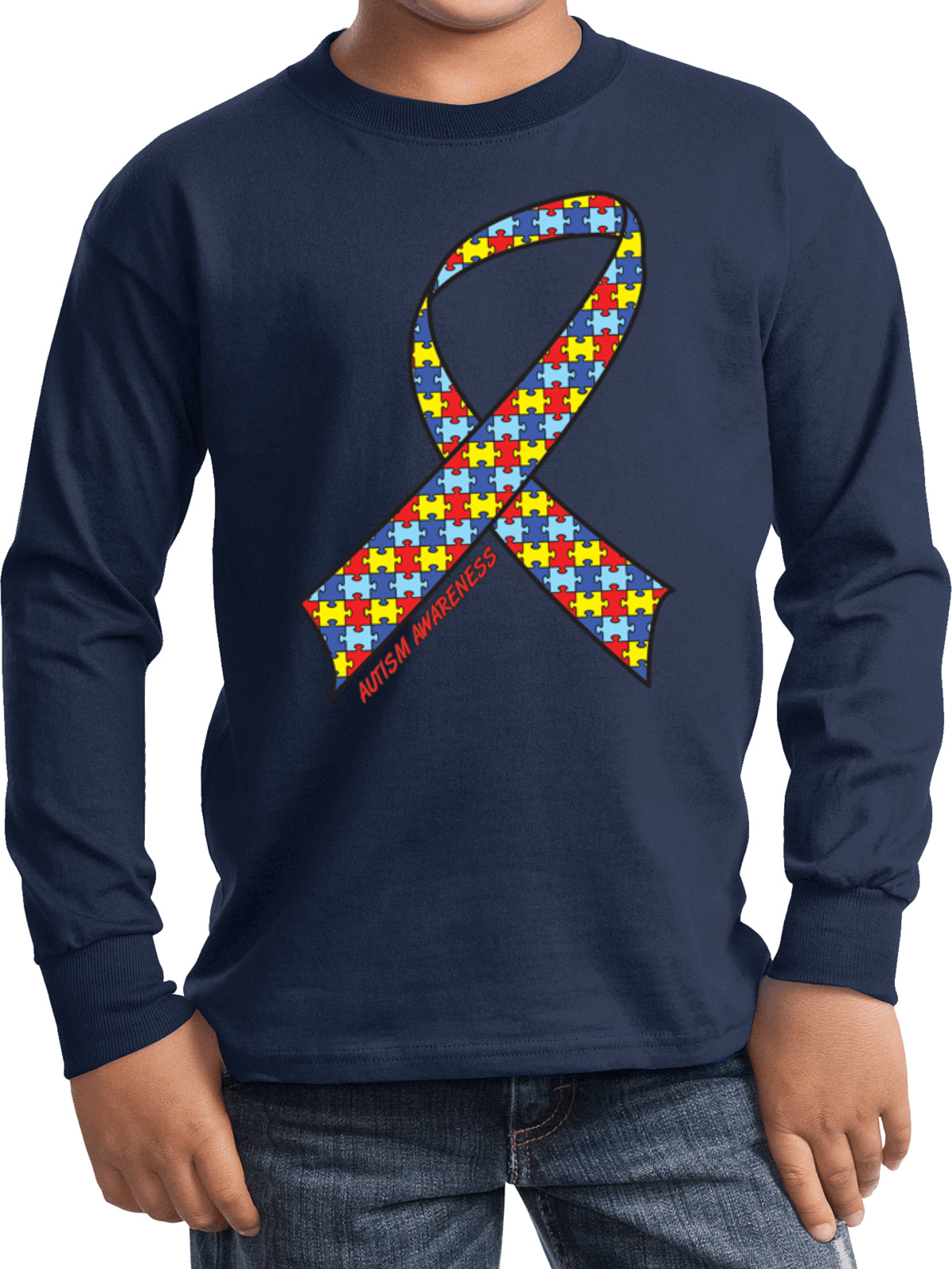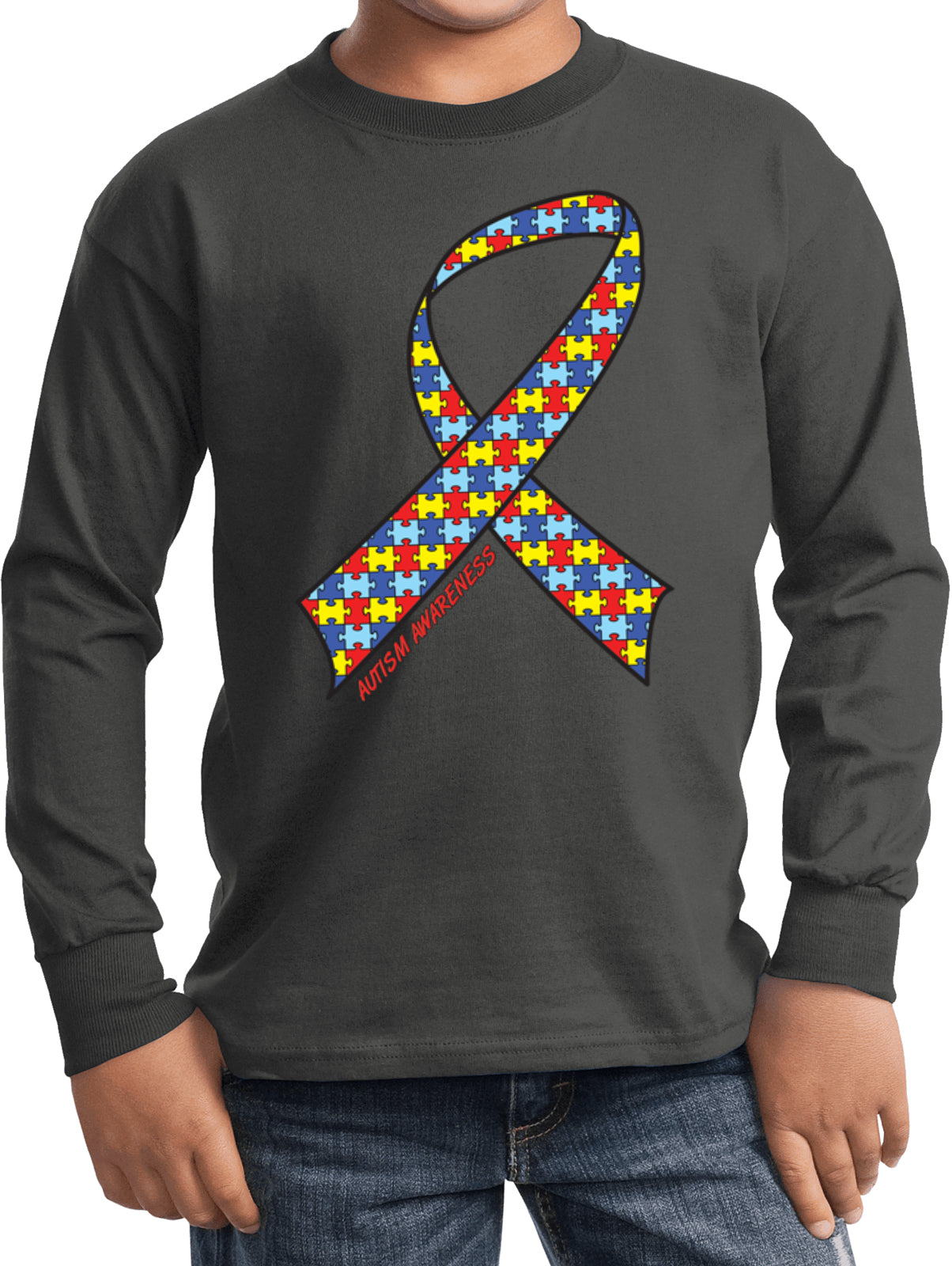 - A youth long sleeve shirt featuring an Autism Awareness Puzzle Ribbon