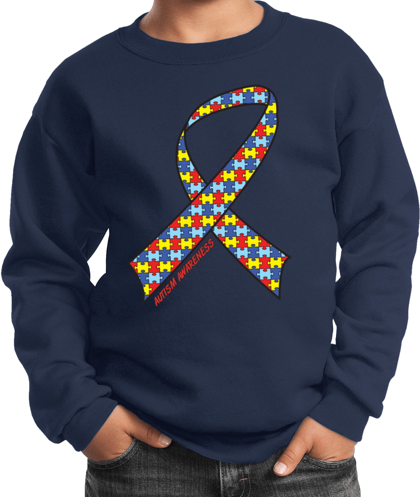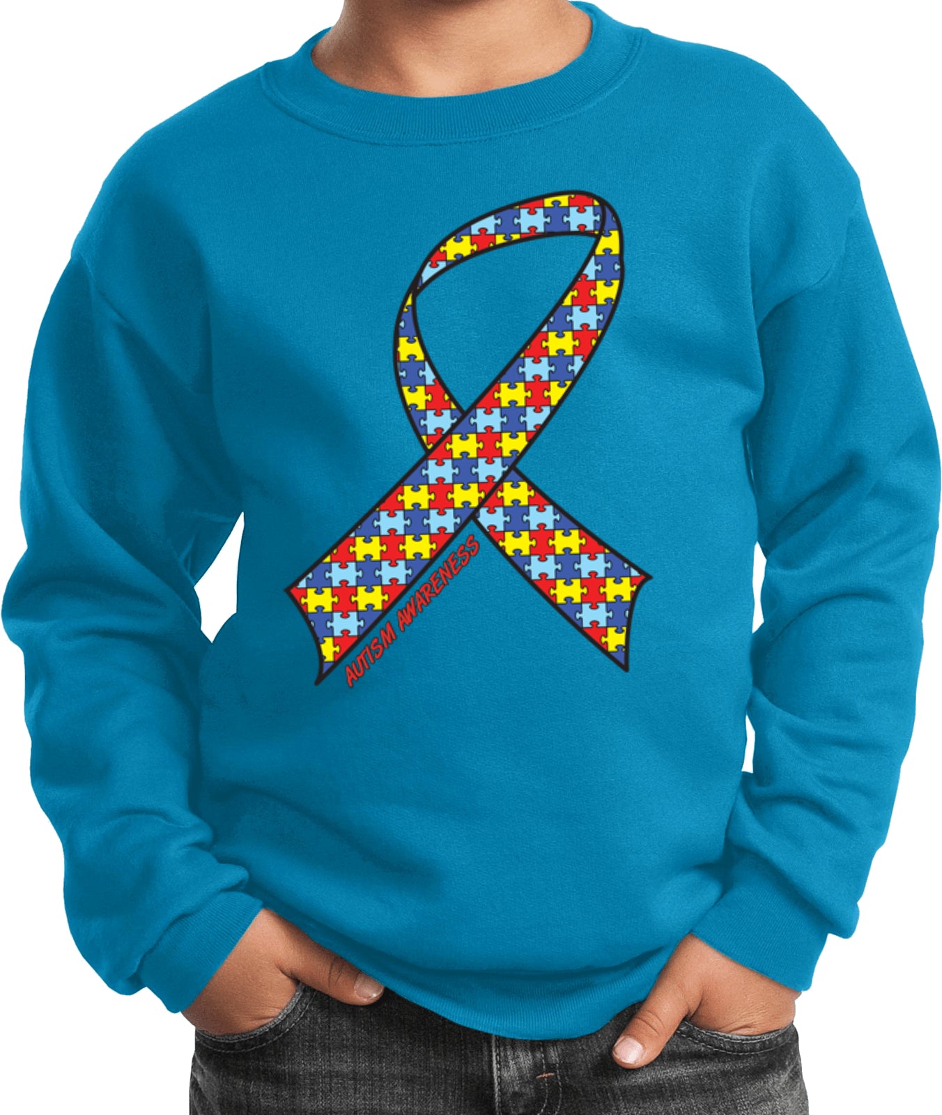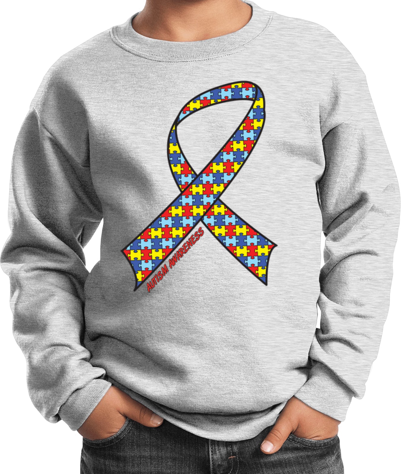 - A youth sweatshirt featuring an Autism Awareness Puzzle Ribbon