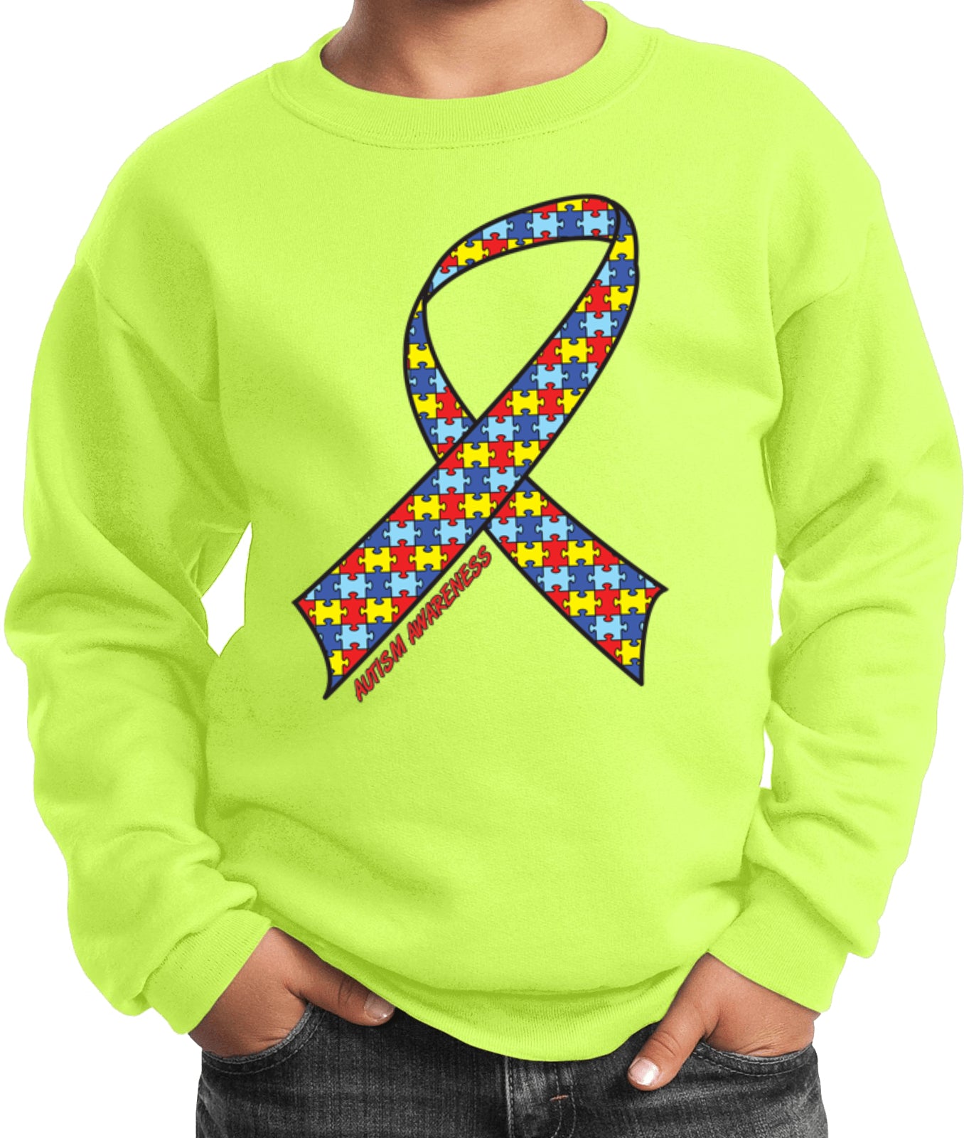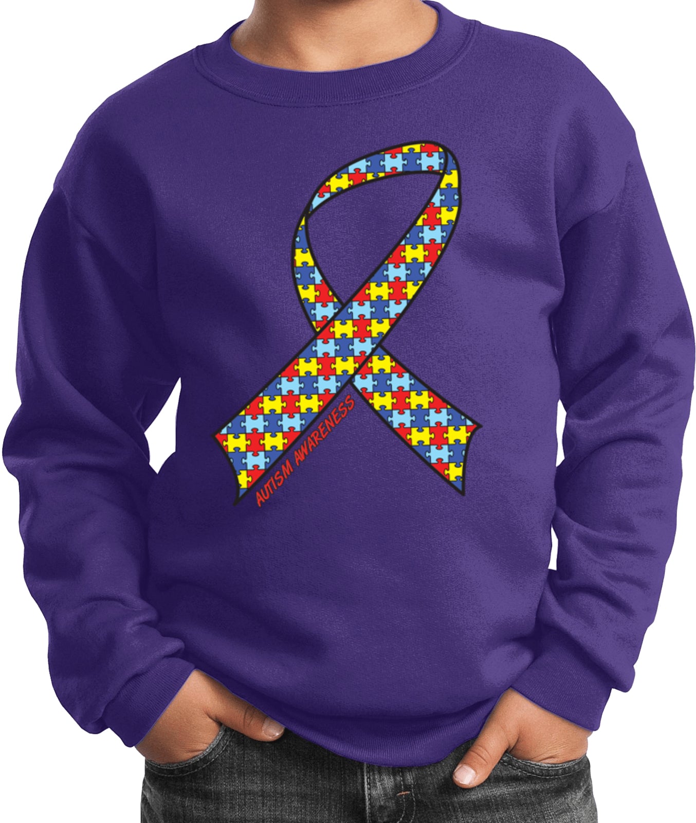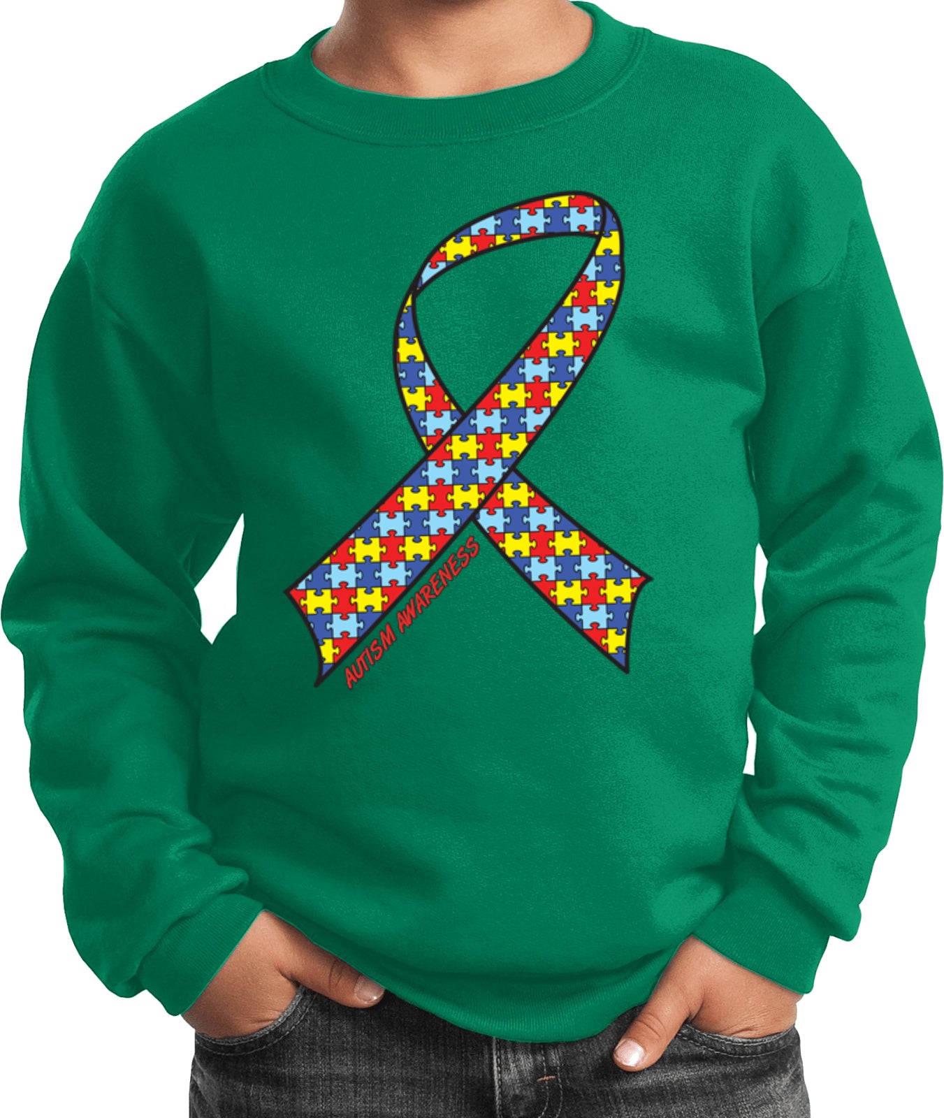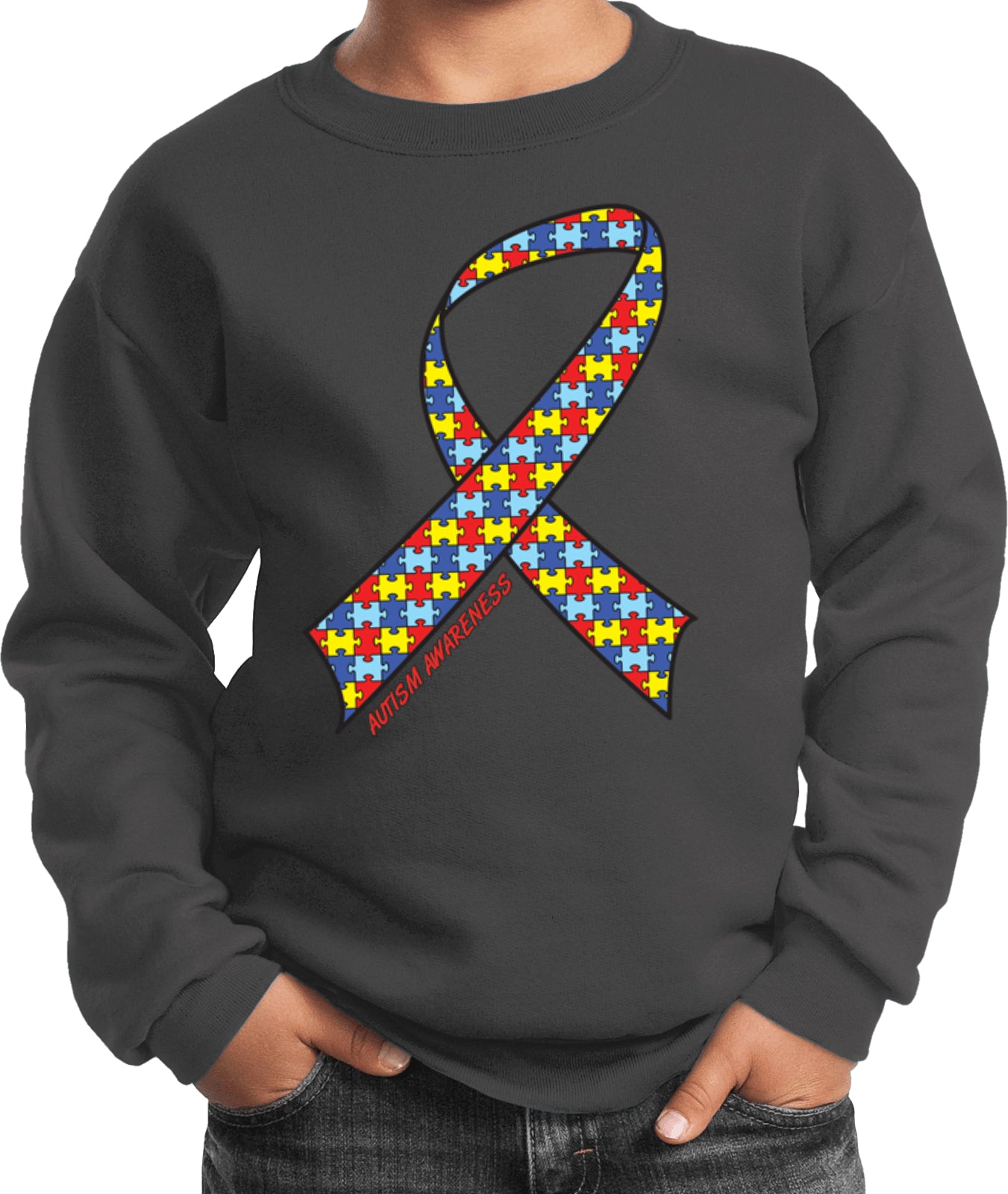 - A youth sweatshirt featuring an Autism Awareness Puzzle Ribbon