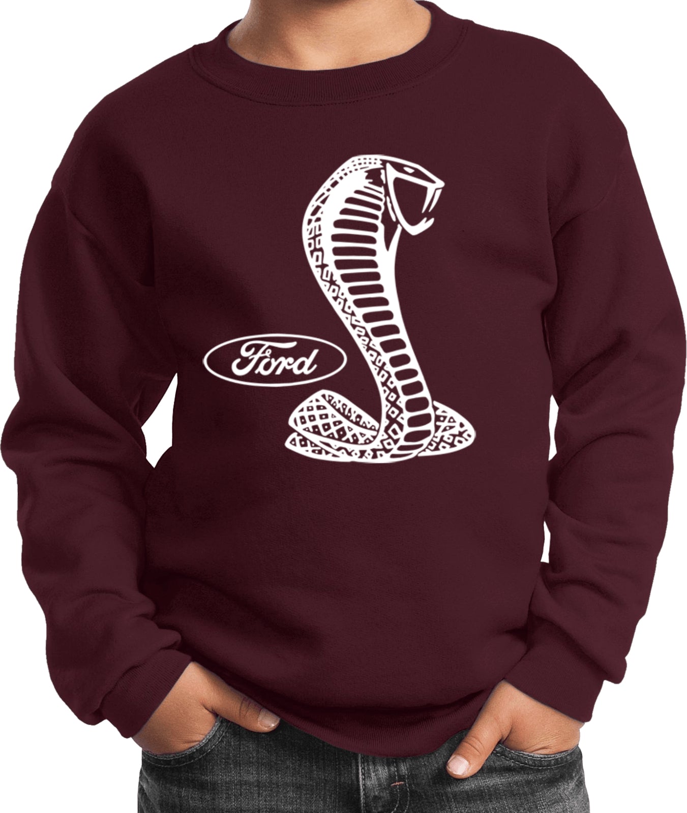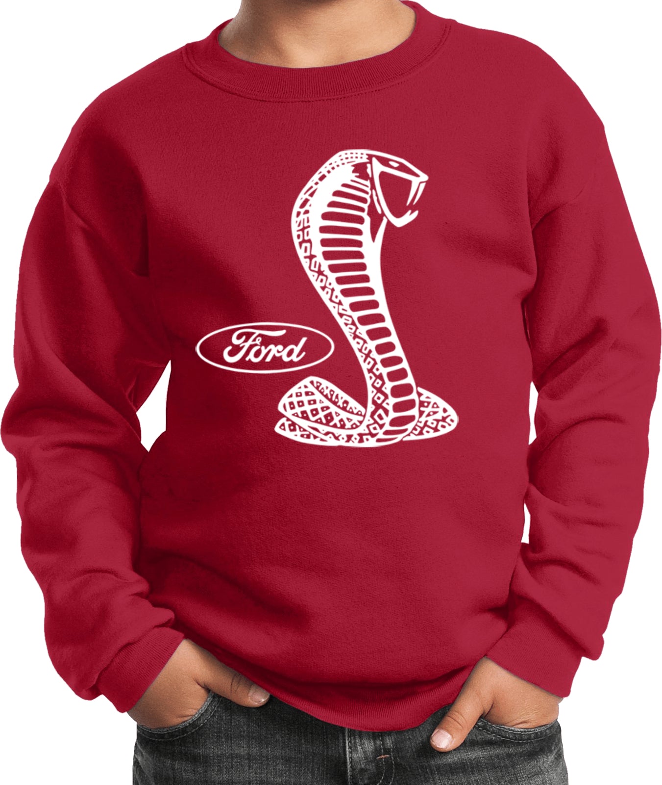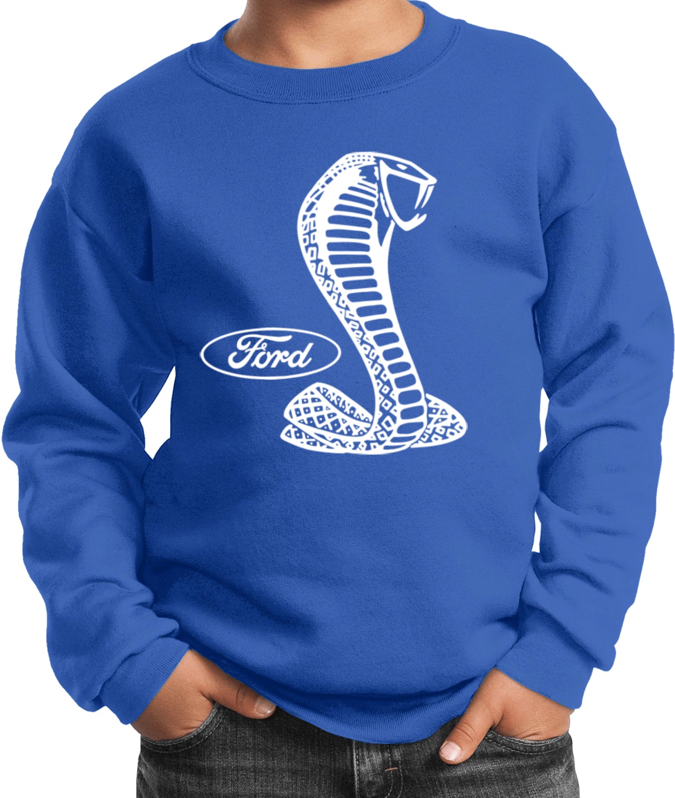 - A youth sweatshirt featuring the Ford Mustang Cobra logo