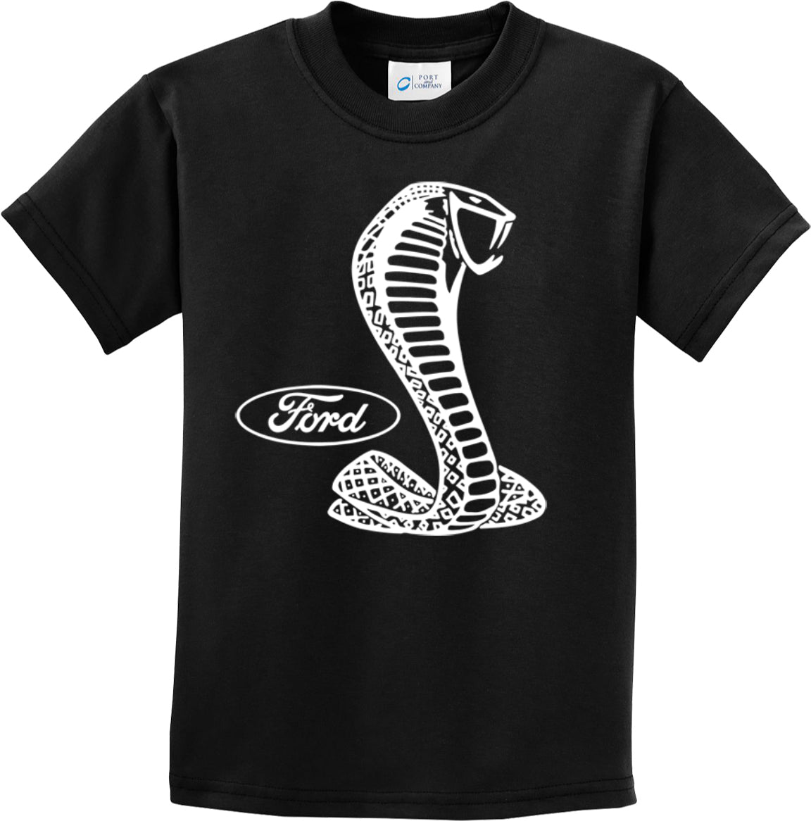 - A youth t-shirt featuring the Ford Mustang Cobra logo