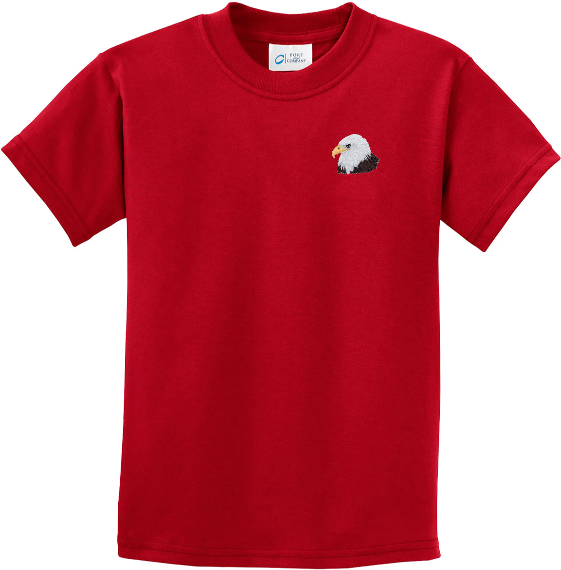 - A youth t-shirt featuring a bald eagle patch as a pocket print