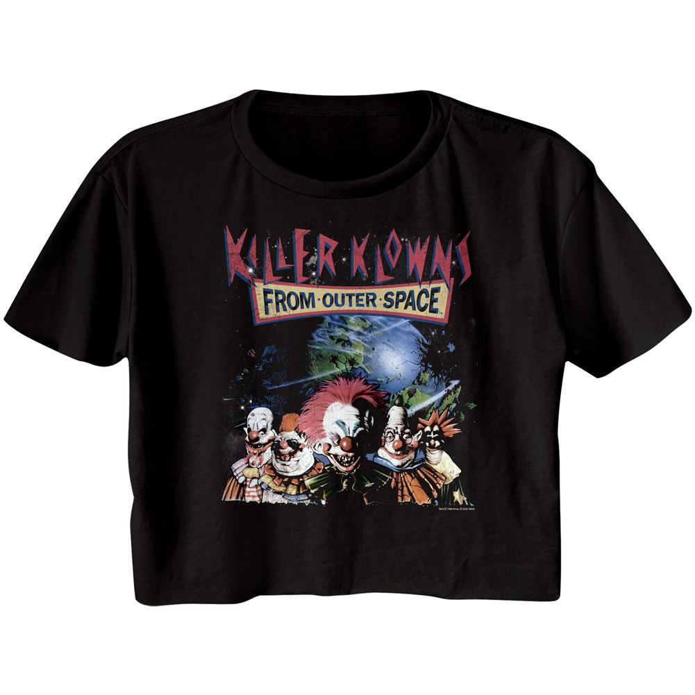 Killer Klowns From Outer Space Evil Clowns in Space Ladies Black Crop Shirt