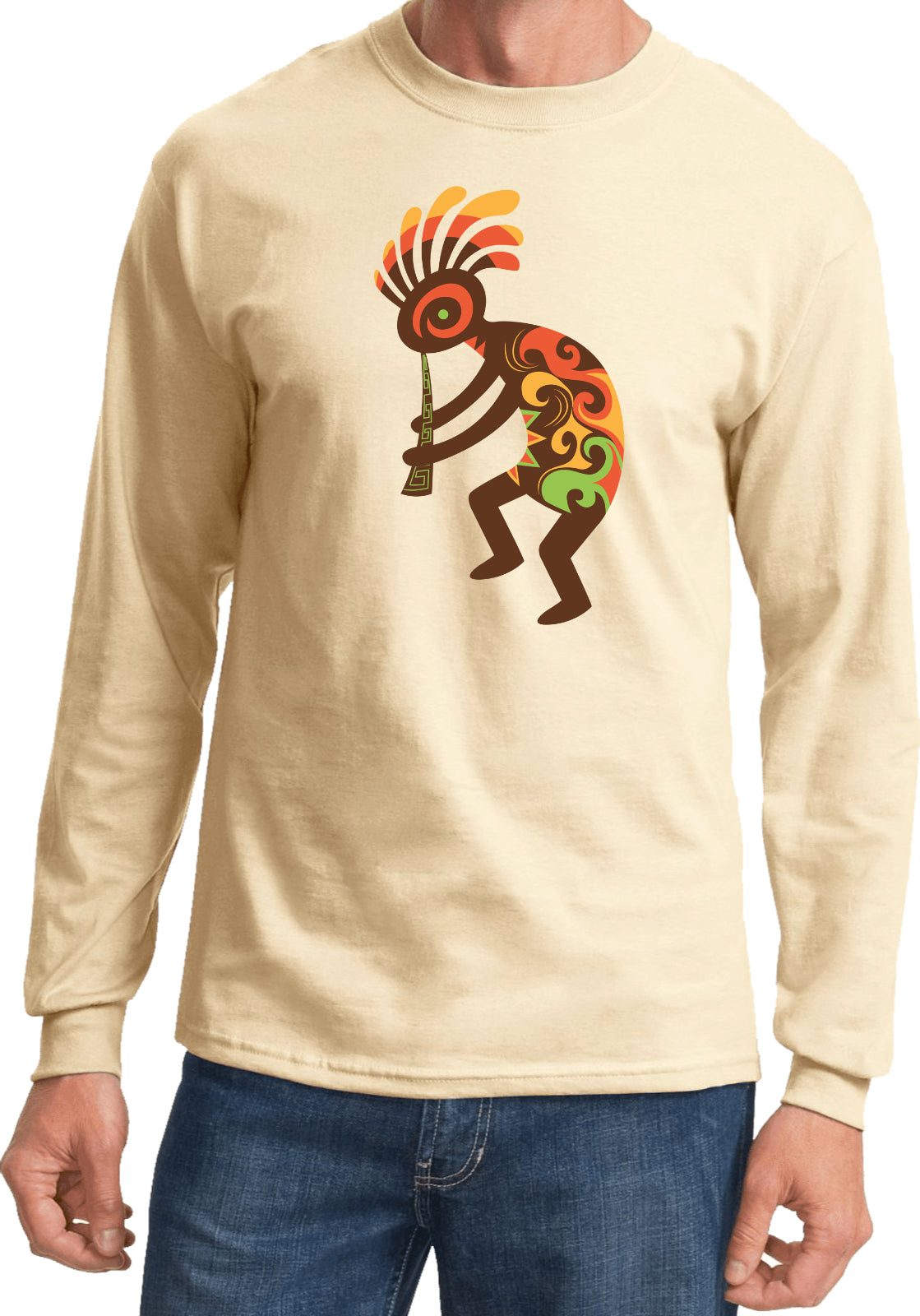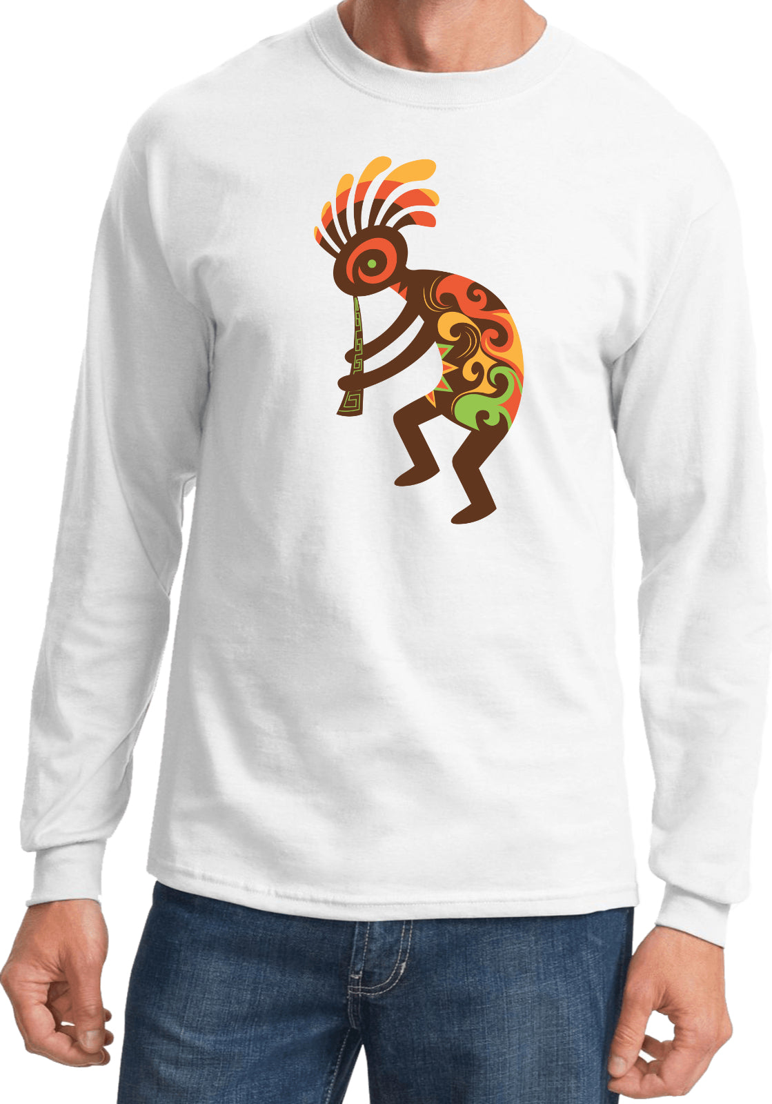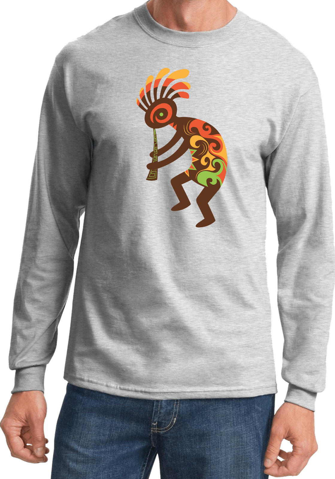 - A Kokopelli humpbacked flute player long sleeve shirt