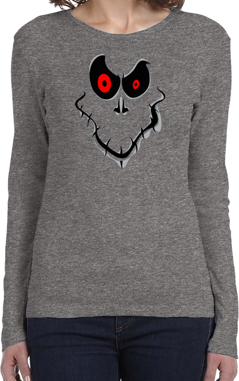 - A ladies halloween long sleeve shirt featuring a ghost face