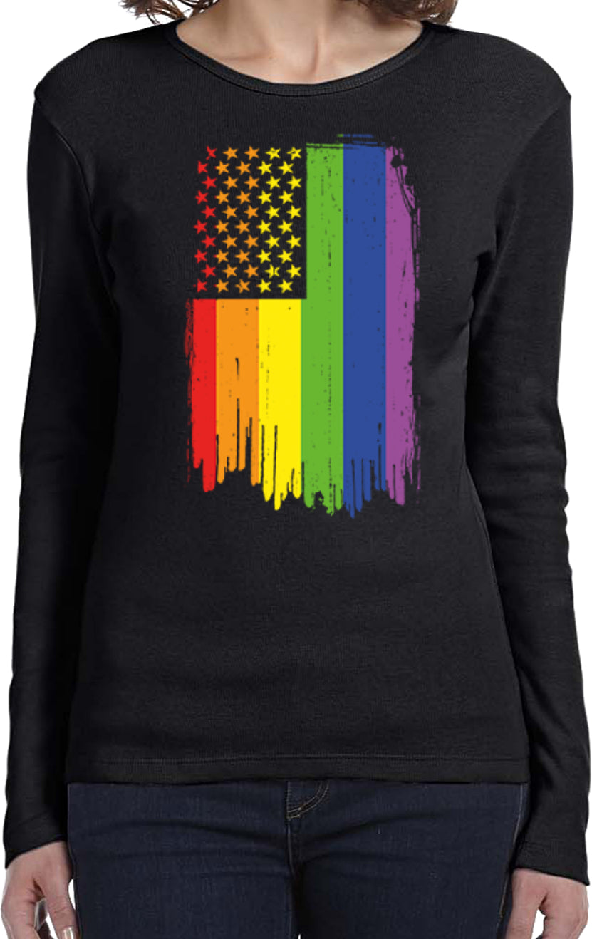 Ladies LGBT Long Sleeve Shirt Gay Pride Flag