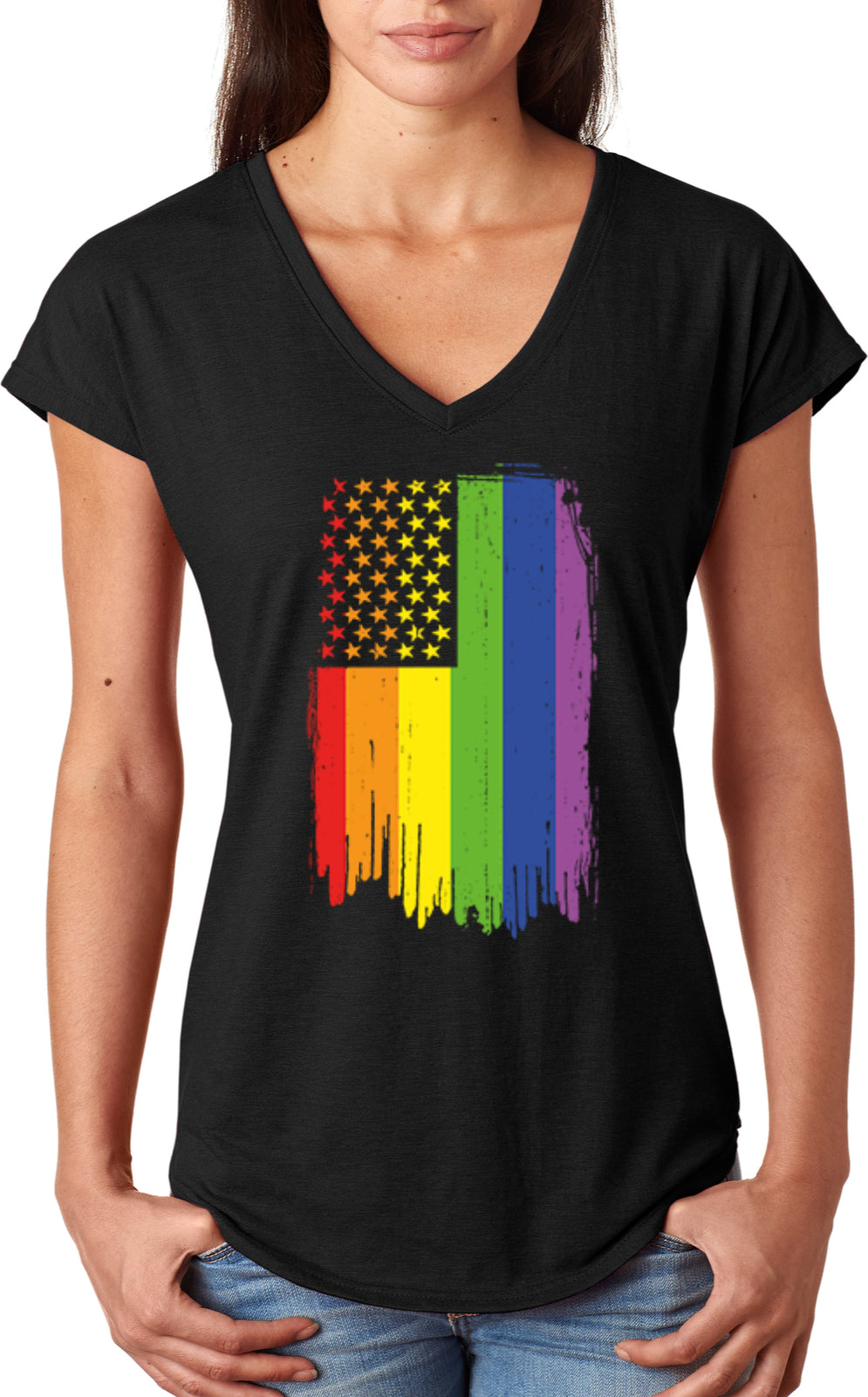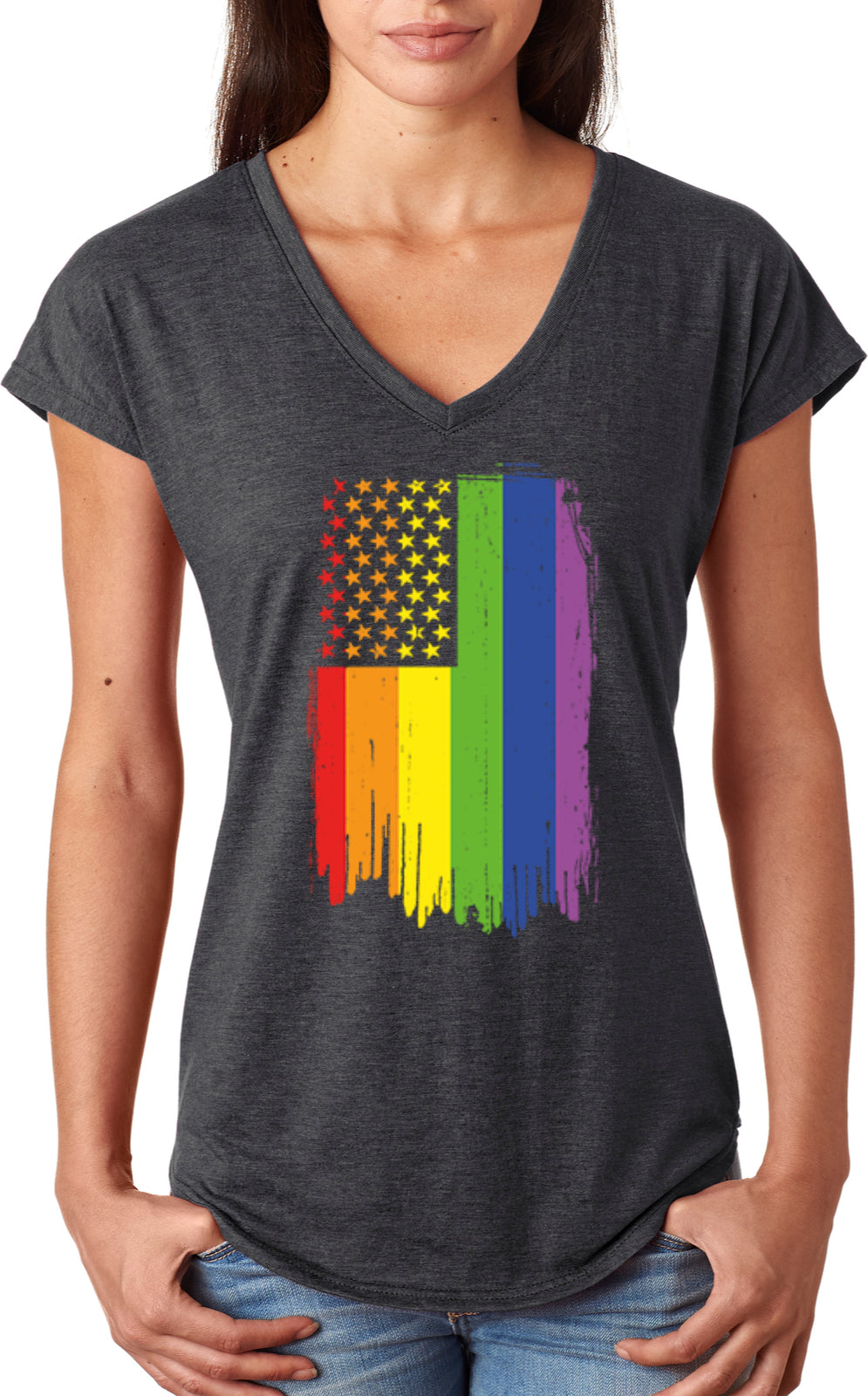 Ladies LGBT Triblend V-Neck Shirt Gay Pride Flag