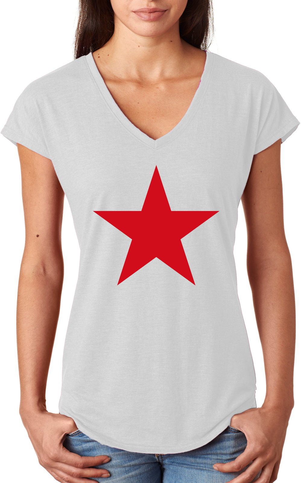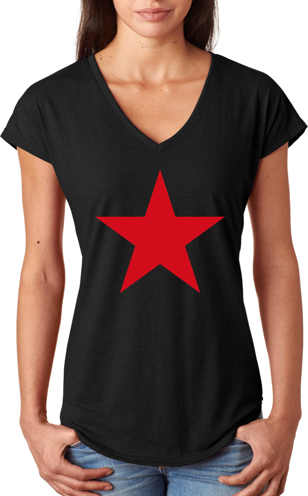 Ladies Soviet Union T-shirt Red Star Triblend V-Neck