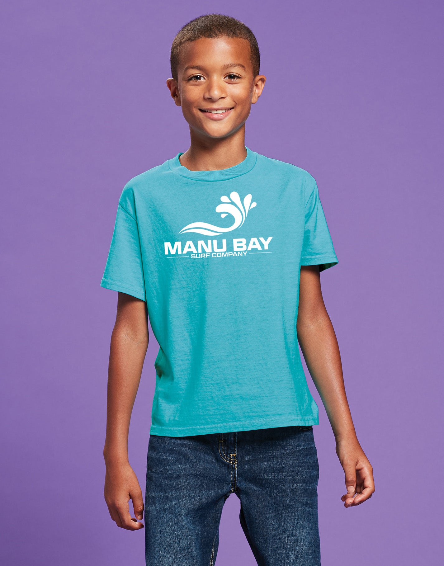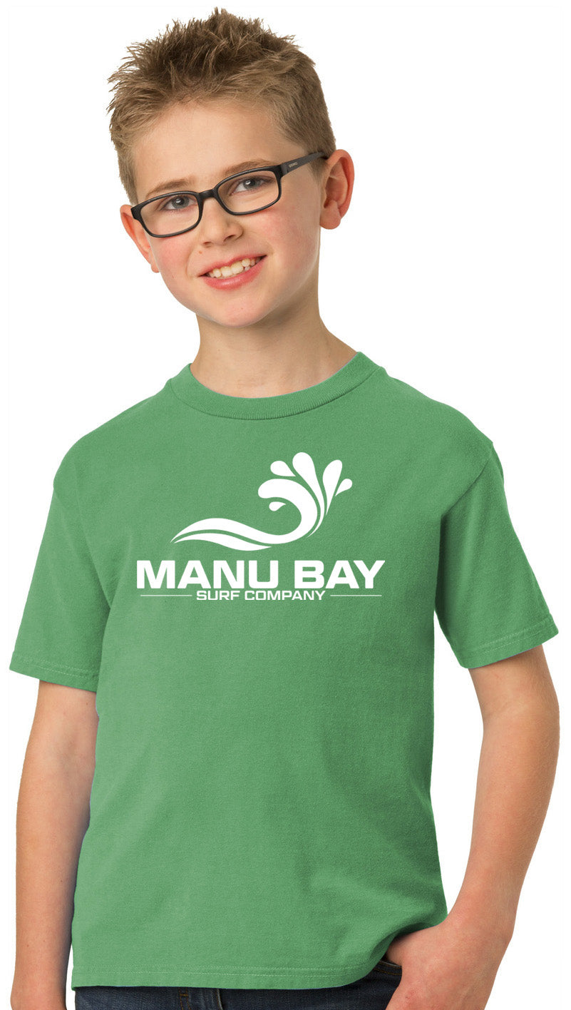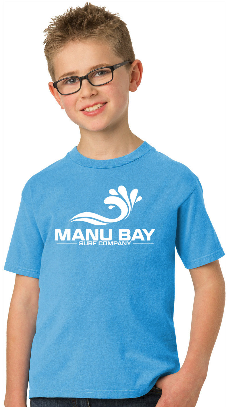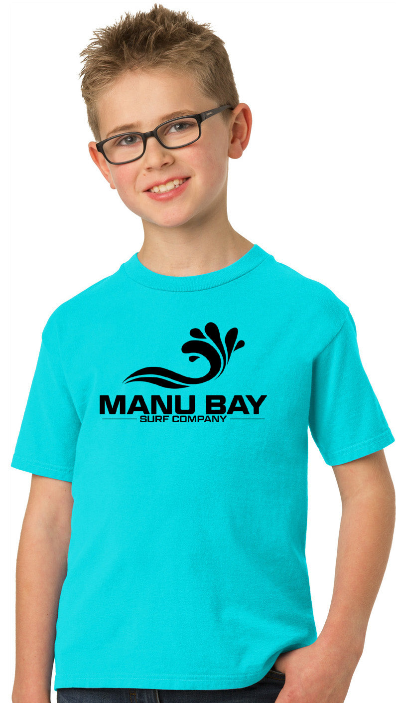 Manu Bay Surf Company Logo Kids 100% Cotton Surfing Tee Shirt