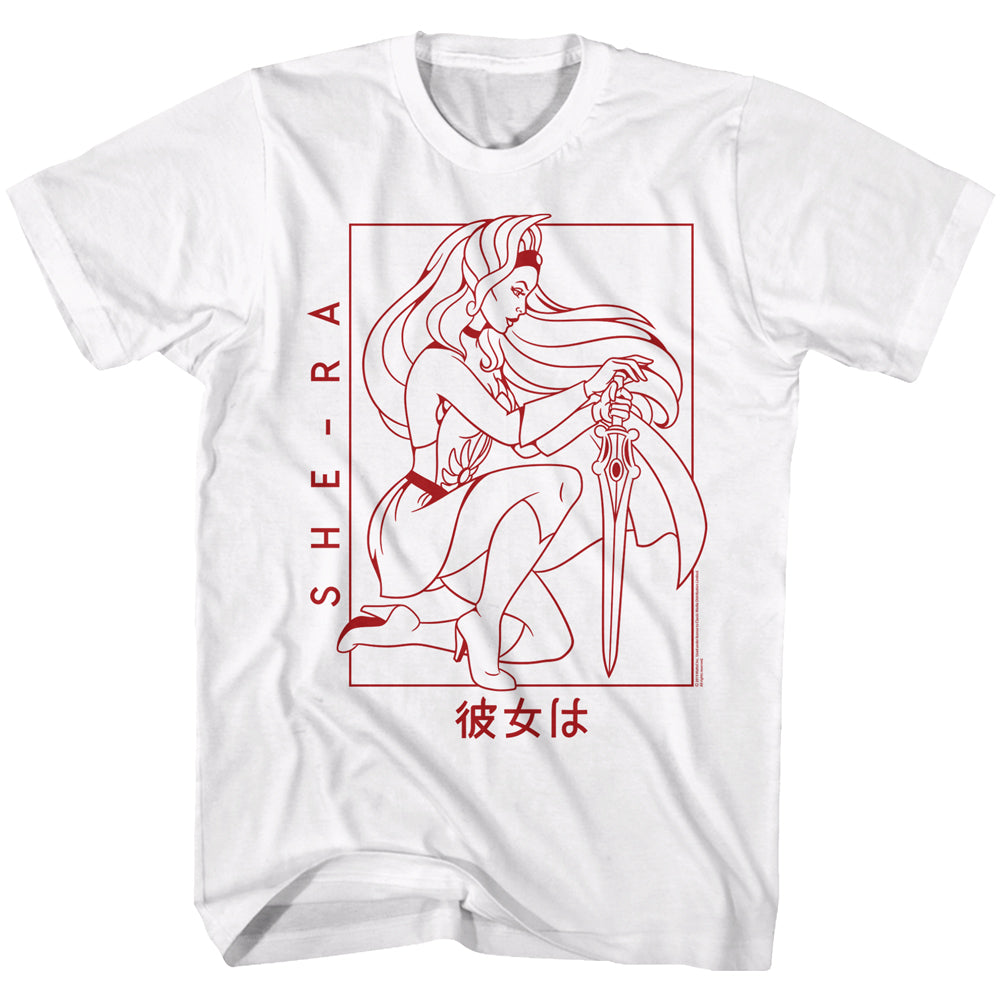 Masters of the Universe She-Ra Outline Japanese Text White T-shirt