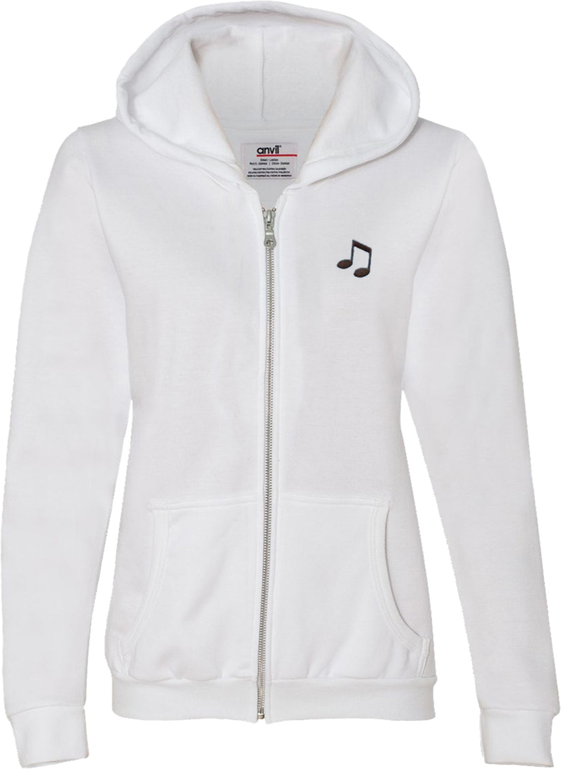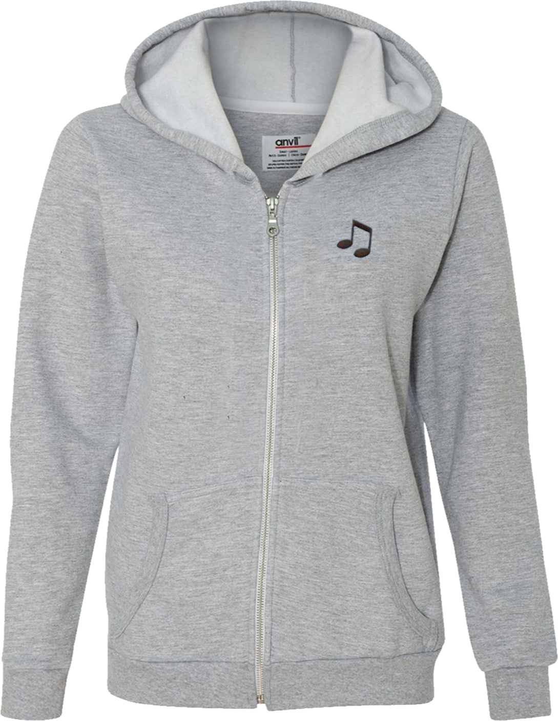 - A ladies full zip hoodie featuring the classic music 8th note symbol