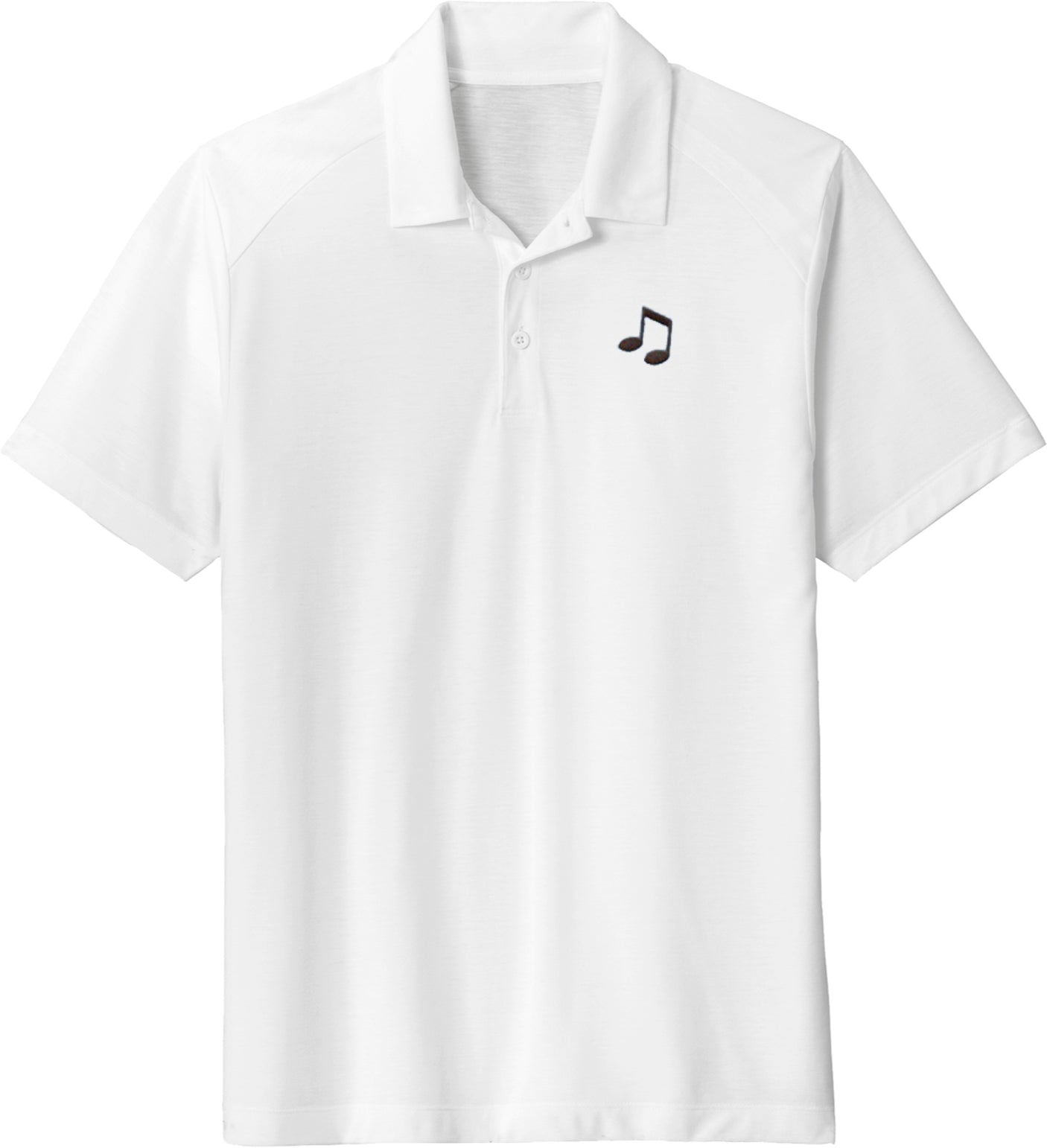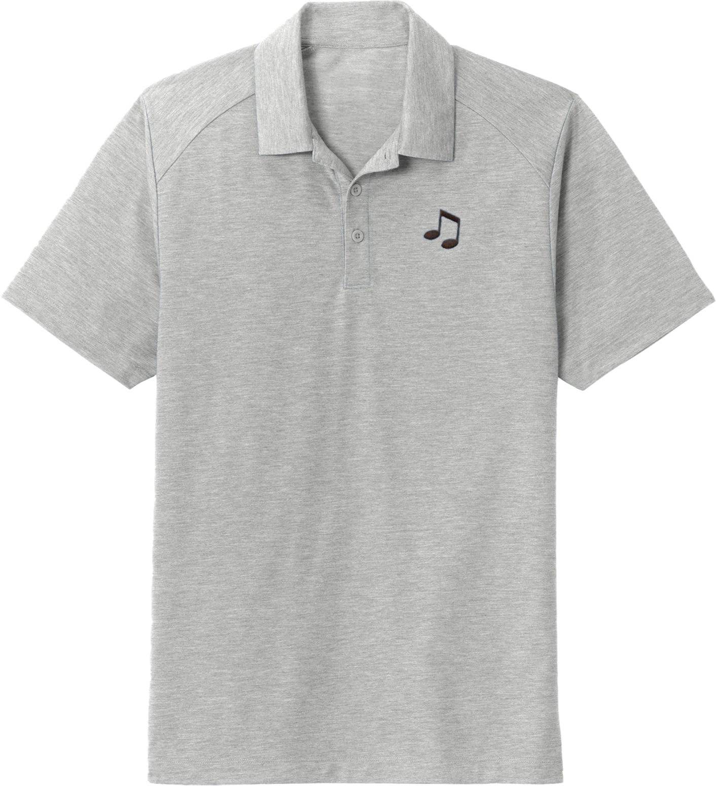 - A mens tri blend polo shirt featuring the classic music 8th note symbol