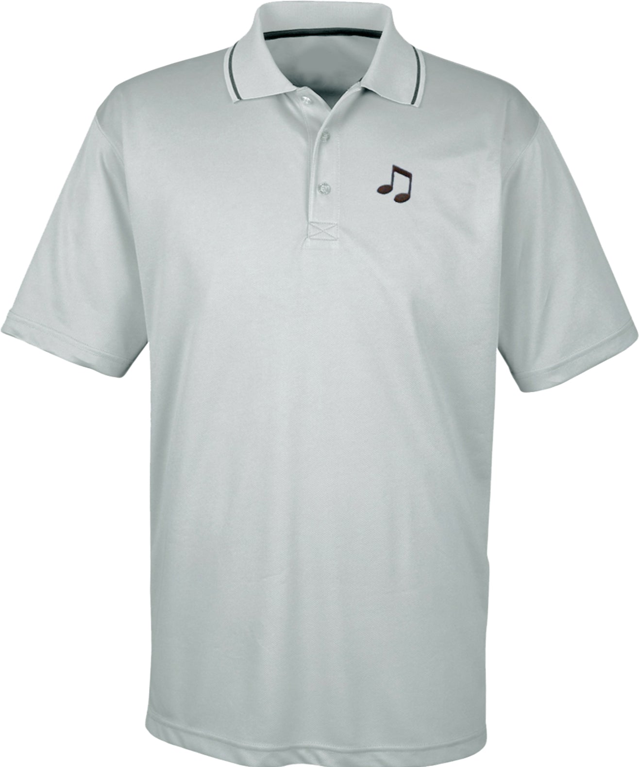 • A mens two tone polo shirt featuring the classic music 8th note symbol