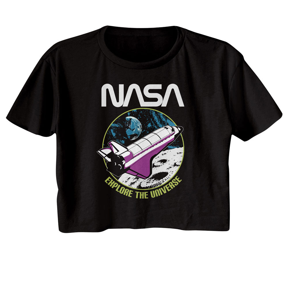 An officially licensed relaxed fit NASA womens crop top. Made from a comfortable blend of cotton/polyester. The t-shirt features a photo of a spaceship in space and reads Explore The Universe. This t-shirt makes the perfect gift for all who are interested and fascinated by space.