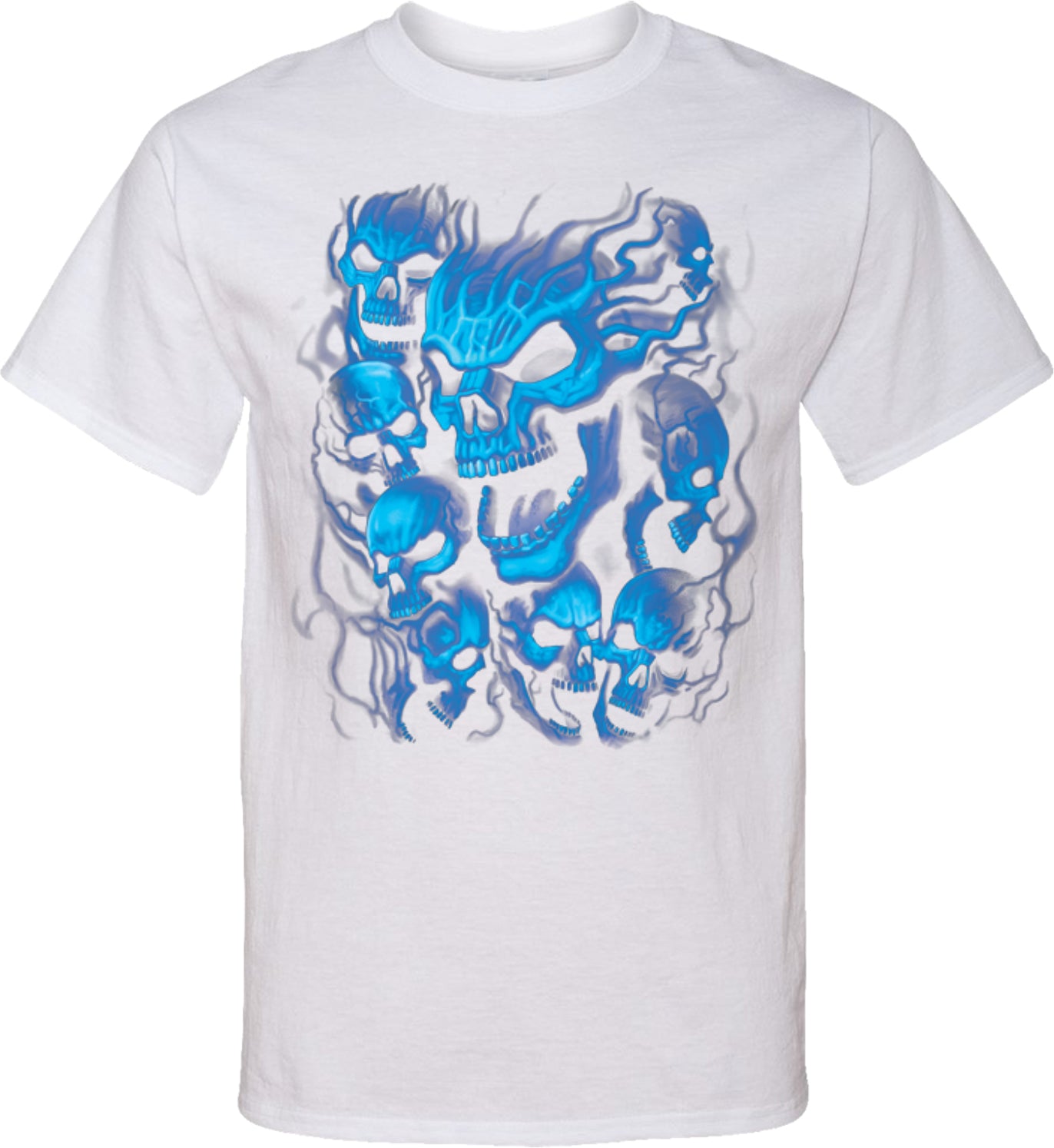 - A mens tall t-shirt featuring a cool flaming blue skulls design