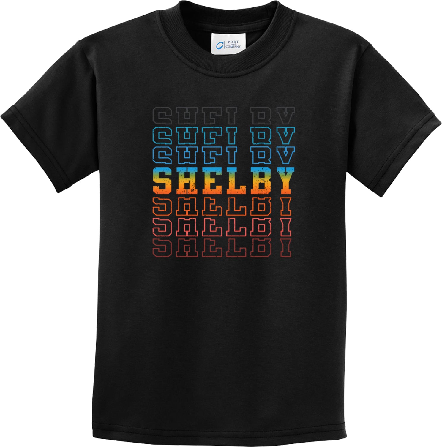 A Shelby youth t-shirt with a traditional silhouette to fit both boys and girls. Made from comfortable 100% cotton. The t-shirt features a vintage and colorful design of Shelby repeated. This kids shirt makes the perfect gift for car enthusiast. Size Small (6-8), Medium (10-12), Large (14-16), XL (18-20)