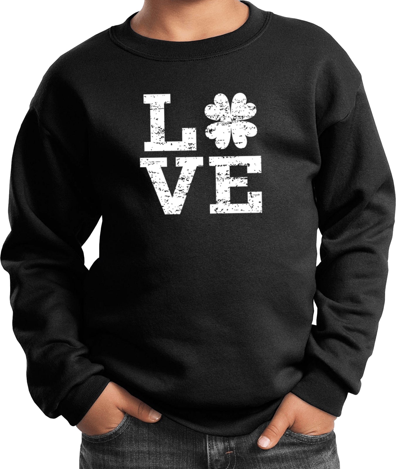St Patricks Day Distressed Love Shamrock Kids Sweatshirt