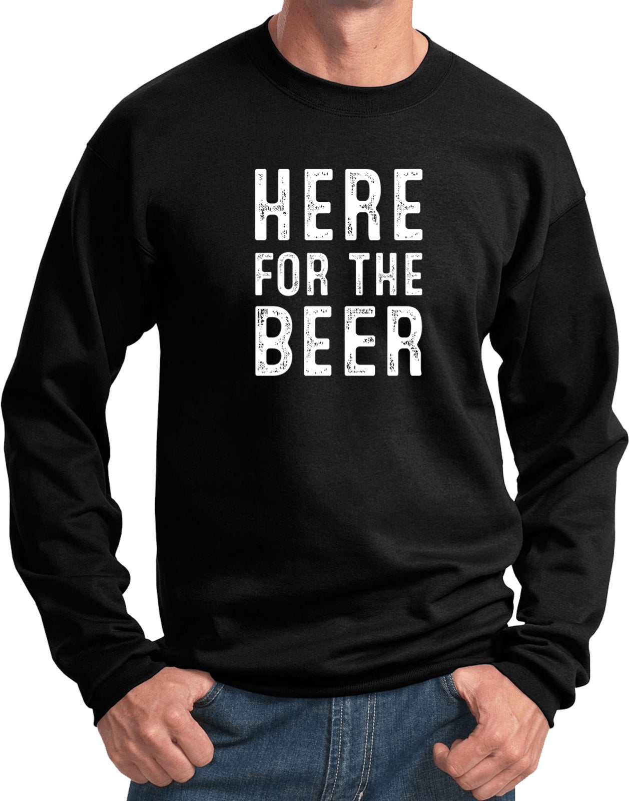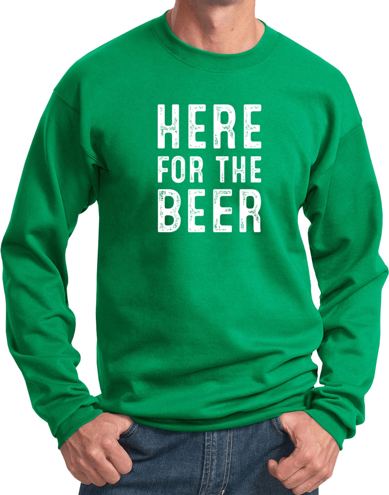 A unisex adult pullover sweatshirt that fits both men and women with its traditional silhouette. It is made with a comfortable blend of cotton/polyester. The design features the funny saying Here for the Beer in a vintage text. This pullover sweatshirt is perfect to wear for your St. Patrick's Day celebrations.