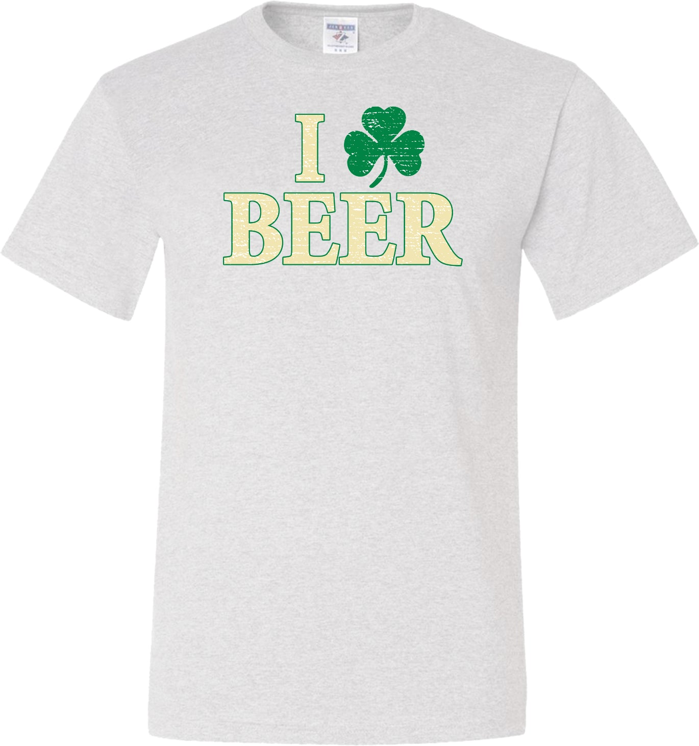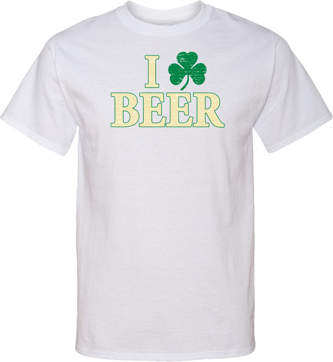 - A St. Patrick's Day tall t-shirt featuring I Love Beer with a shamrock replacing the heart