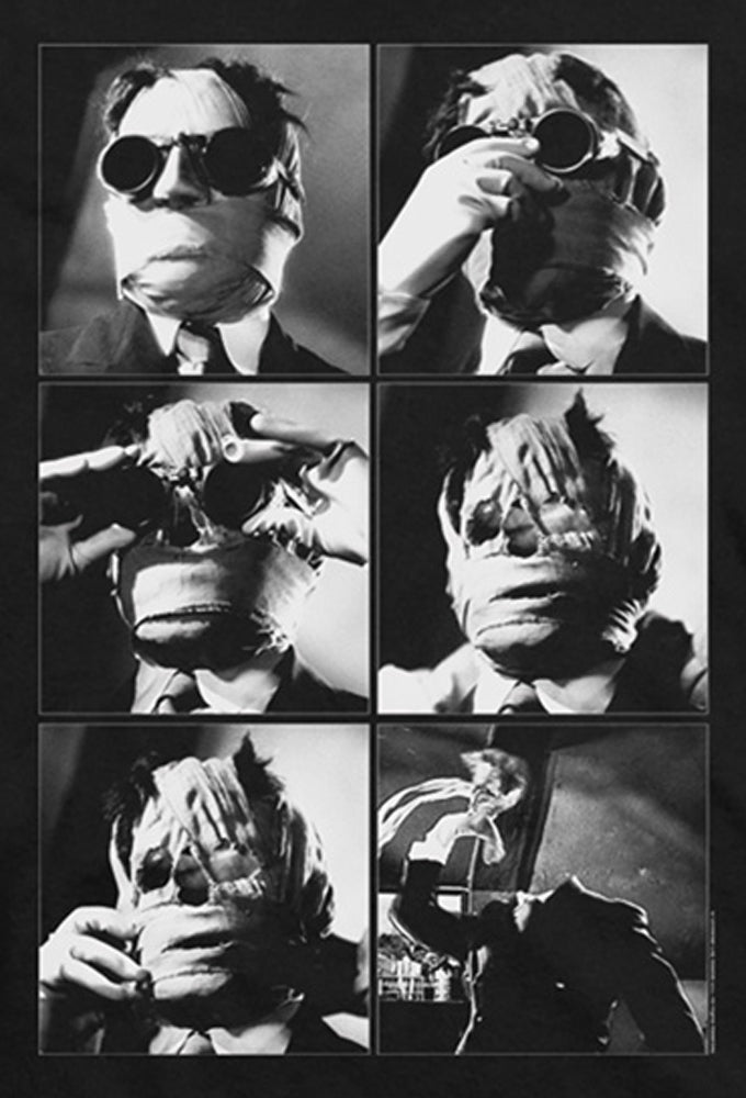 • The Invisible Man Heathered T-shirt featuring pictures of him pulling apart his mask