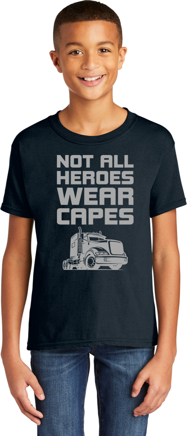 Trucker Not All Heroes Wear Capes Youth Kids Shirt
