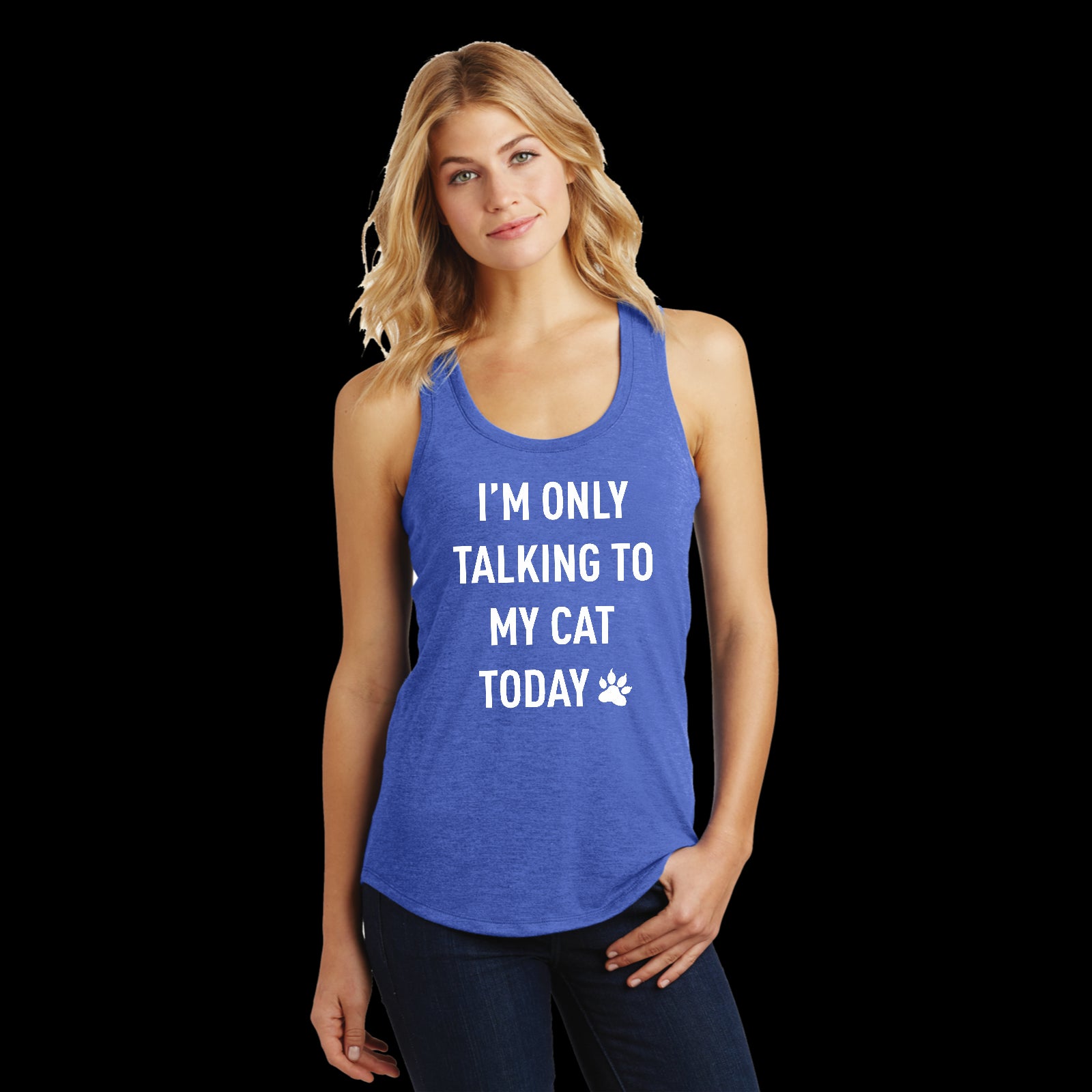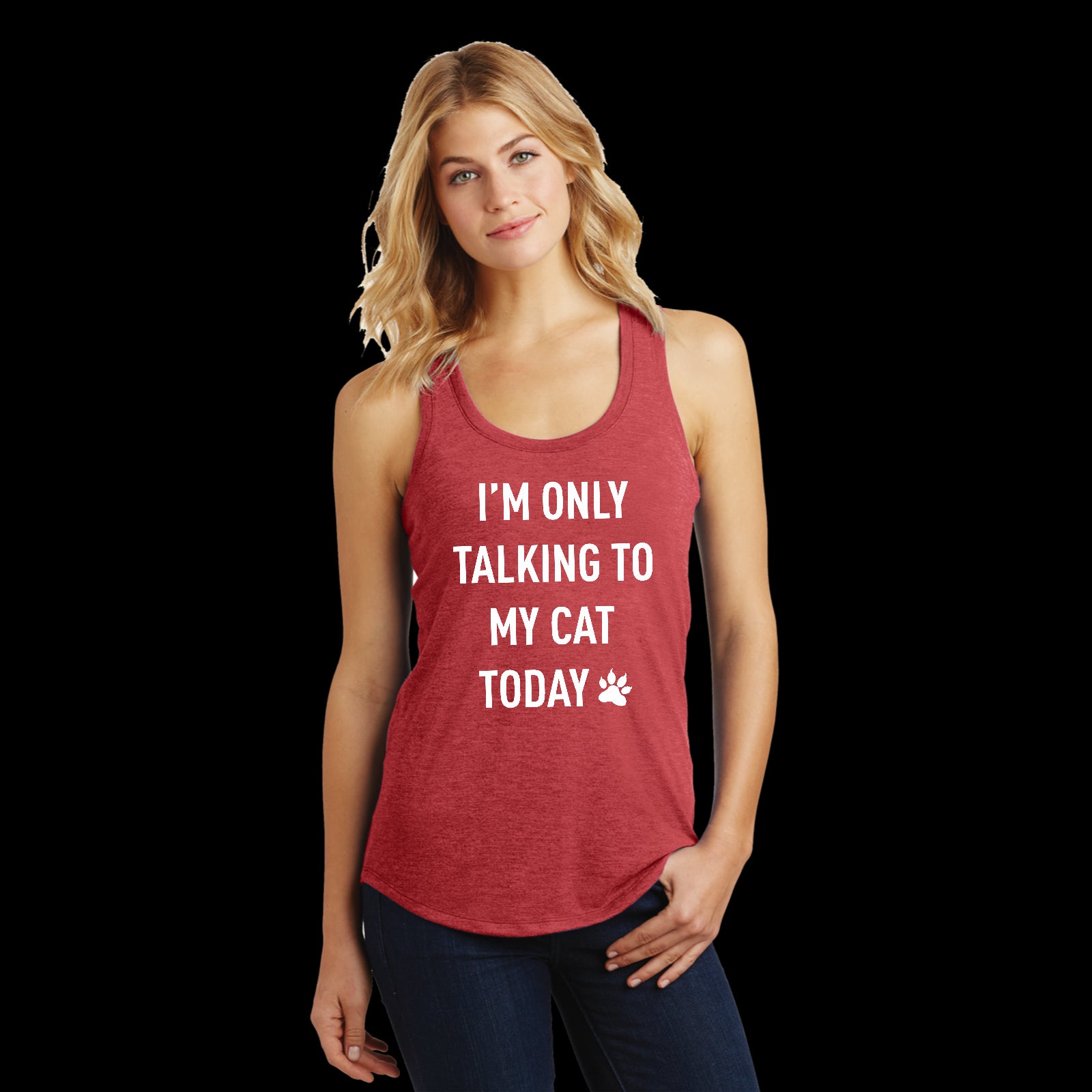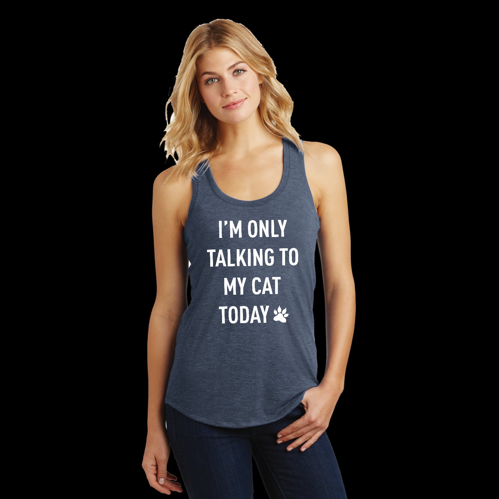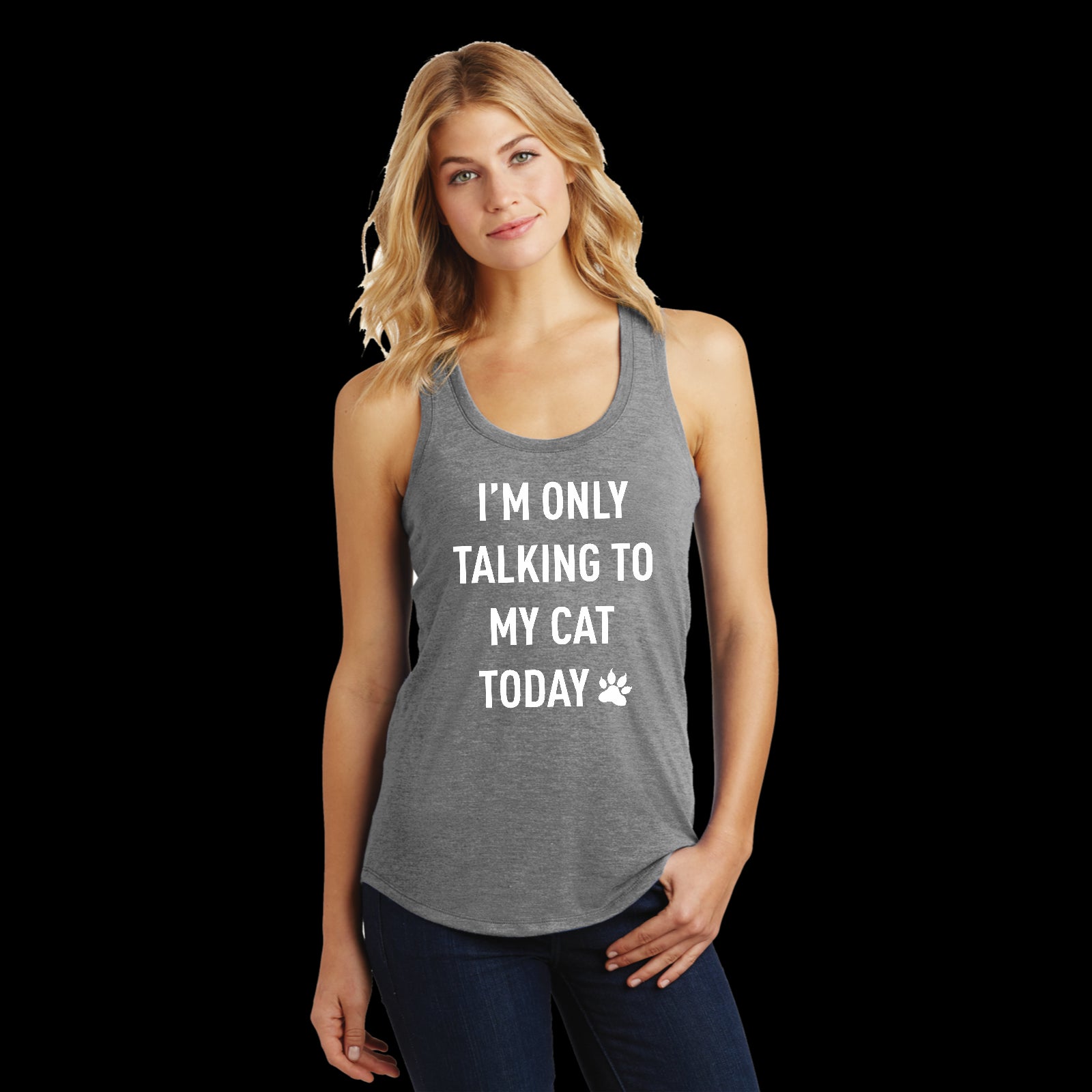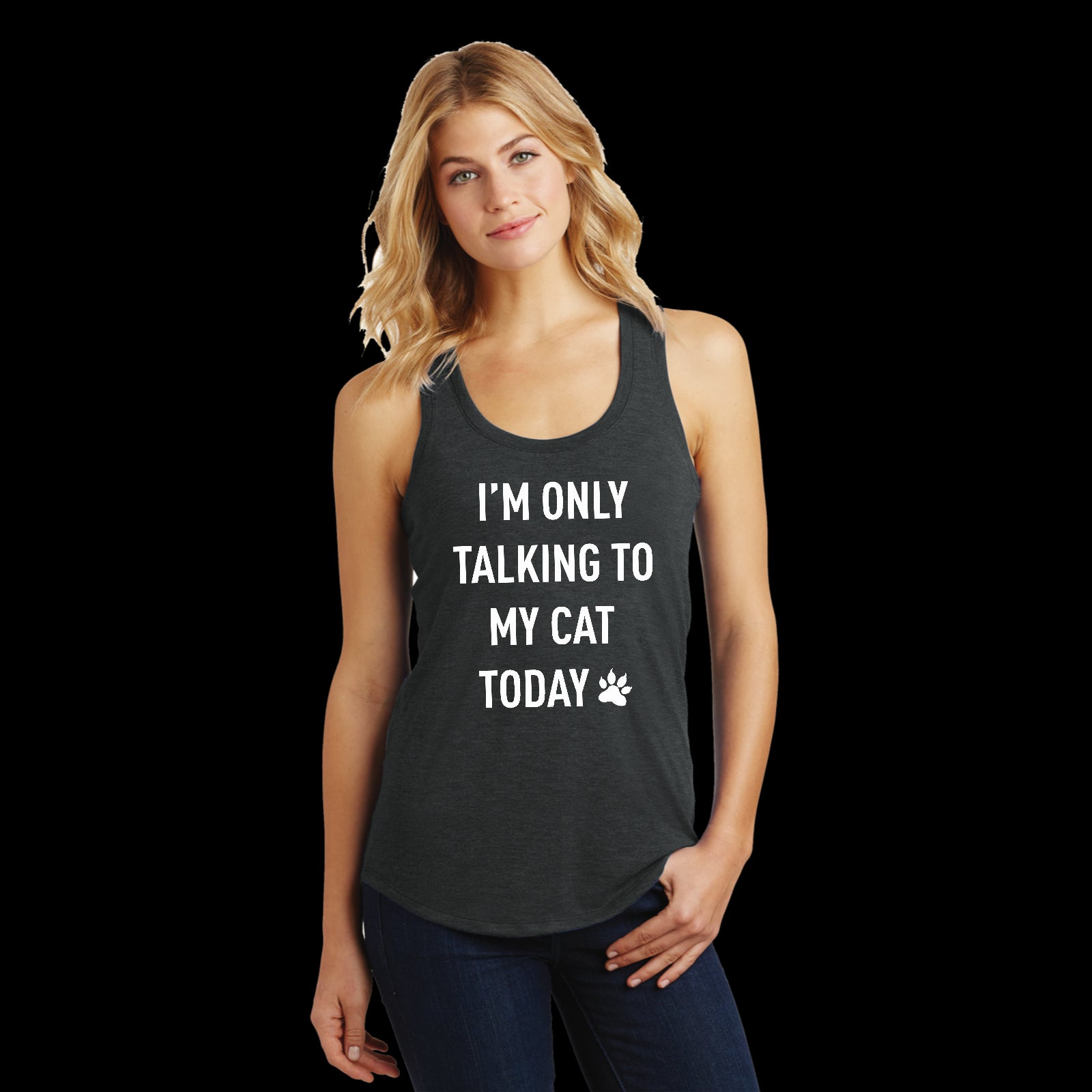 White I'm Only Talking to My Cat Today Funny Ladies Racerback Tank Top