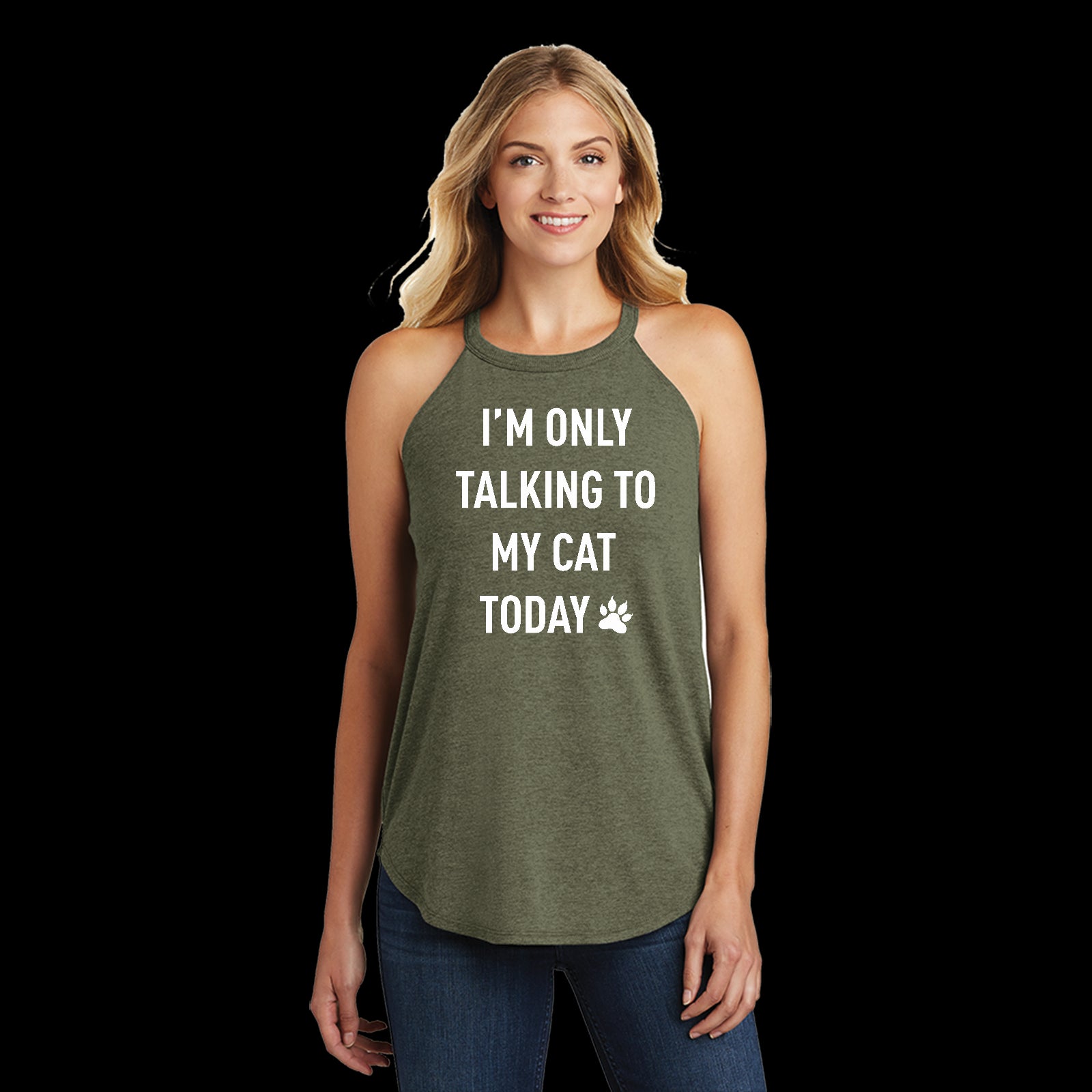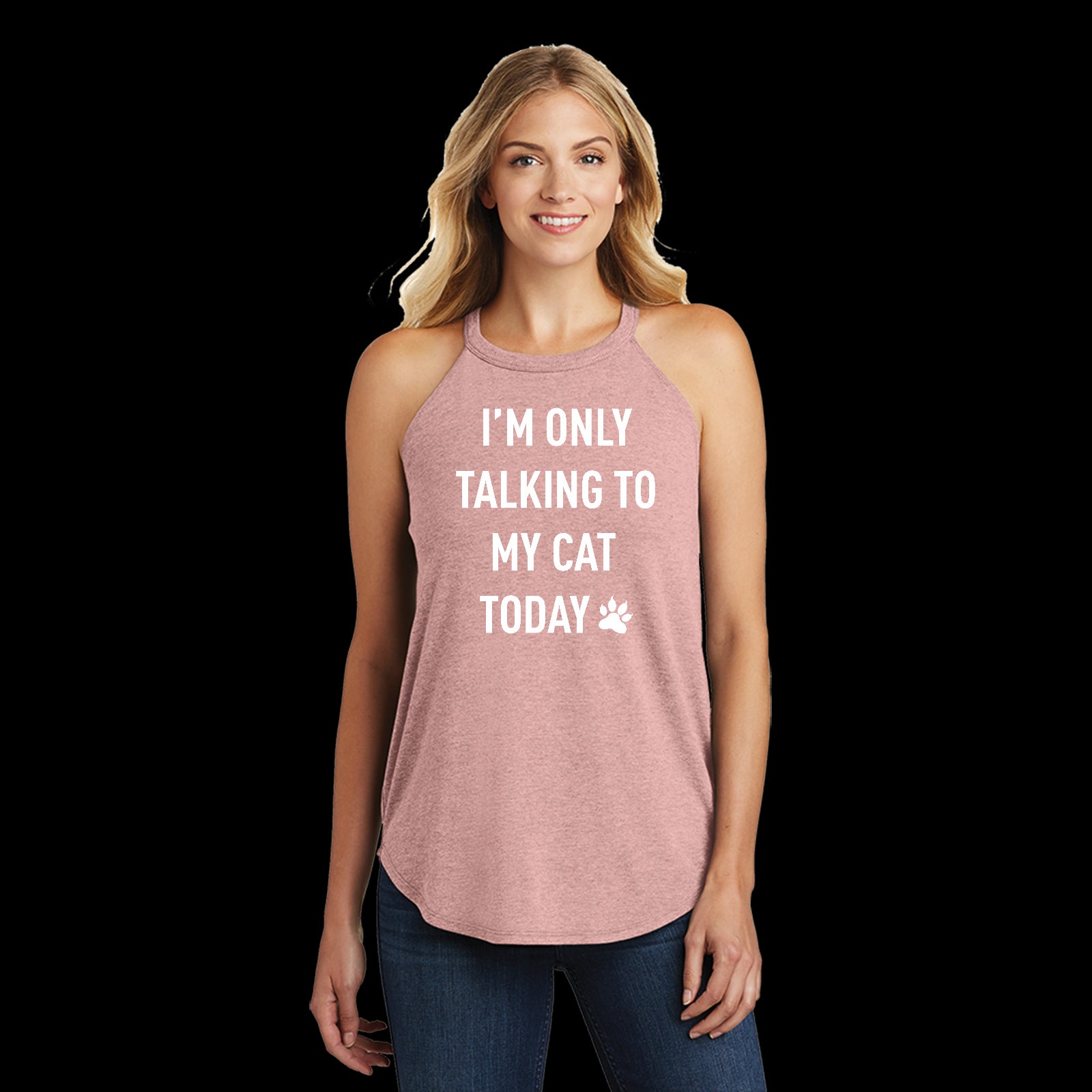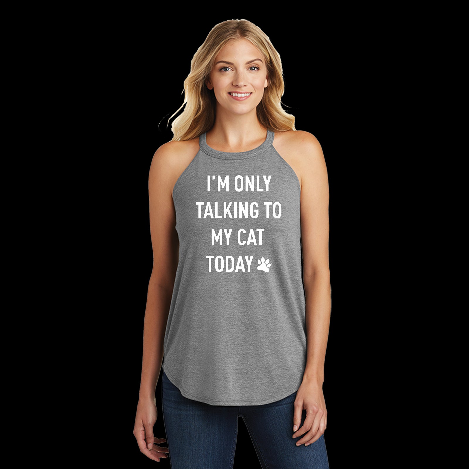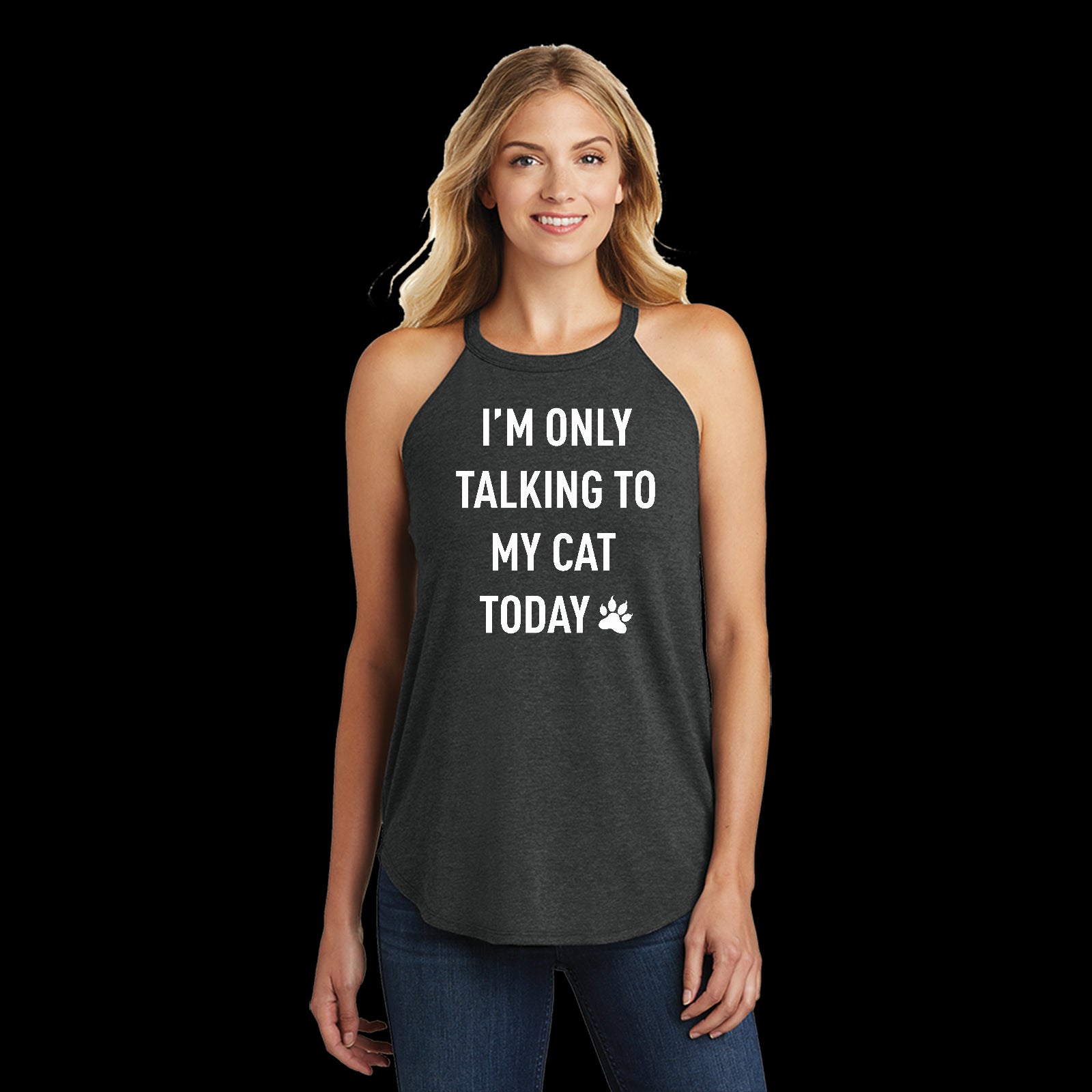 White I'm Only Talking to My Cat Today Funny Ladies Tri Rocker Tanktop