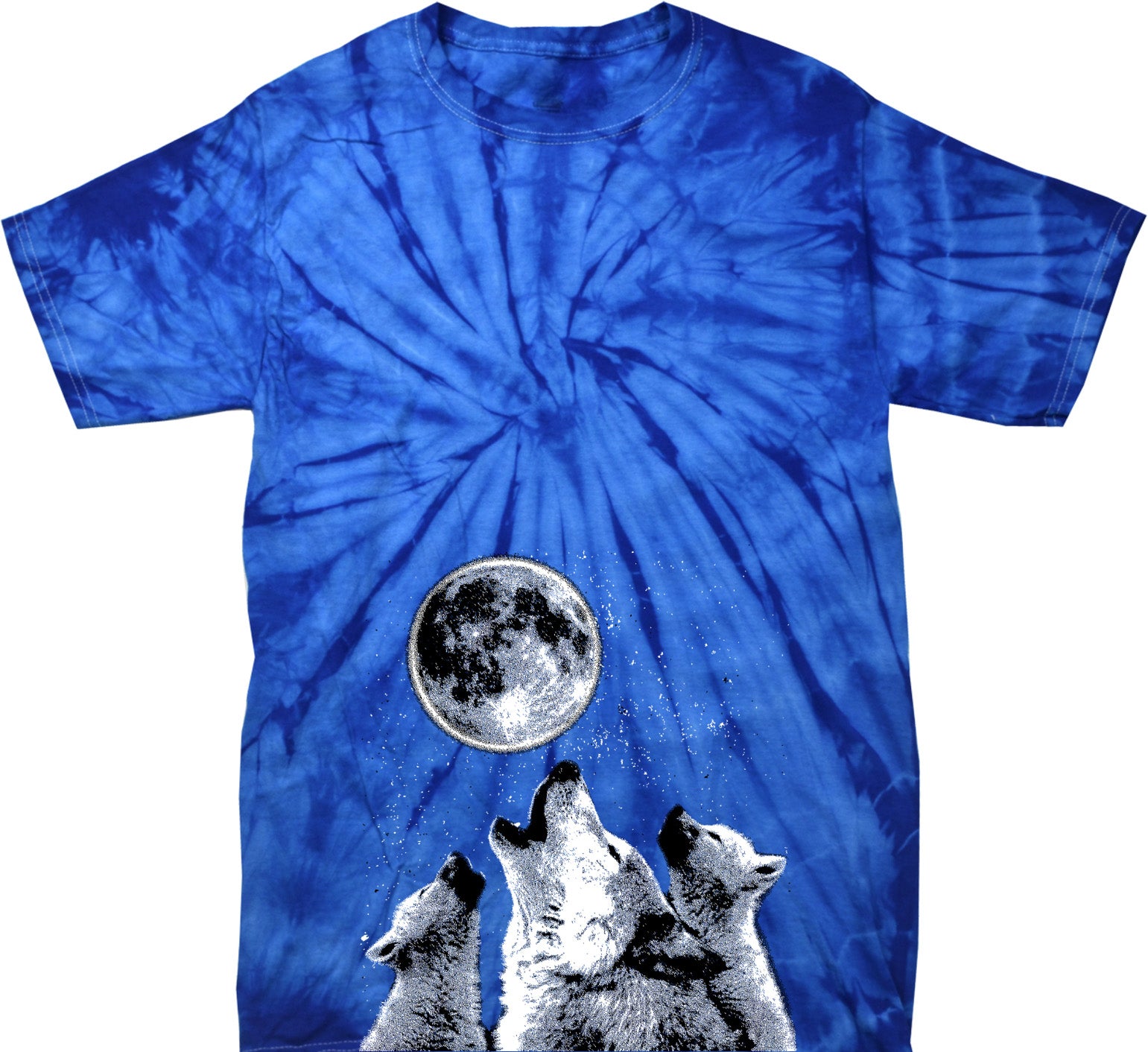 - A spider tie dye t-shirt featuring wolves howling at the moon