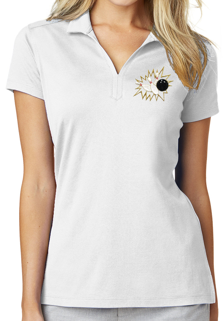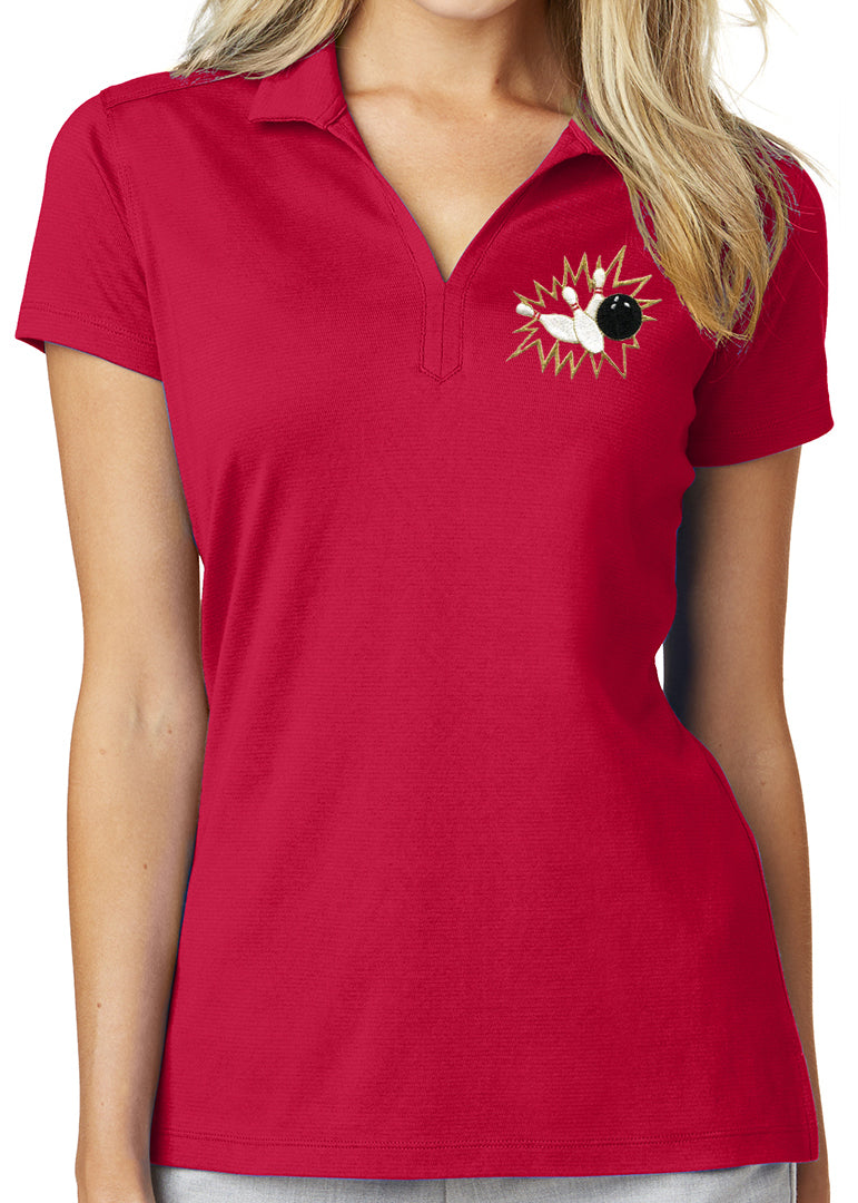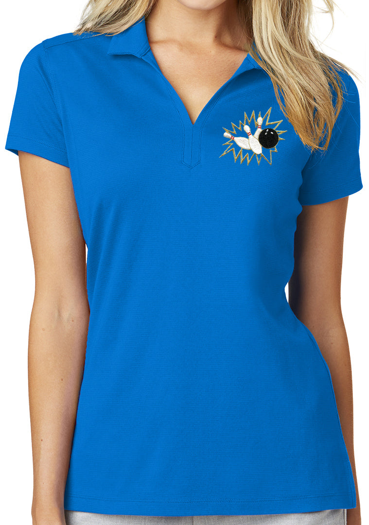 Womens Crashing Bowling Pins Moisture-Wicking Mesh Polo Shirt