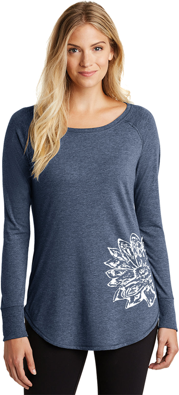 Womens Yoga Shirt Sketch Lotus Side Print Long Sleeve Tunic