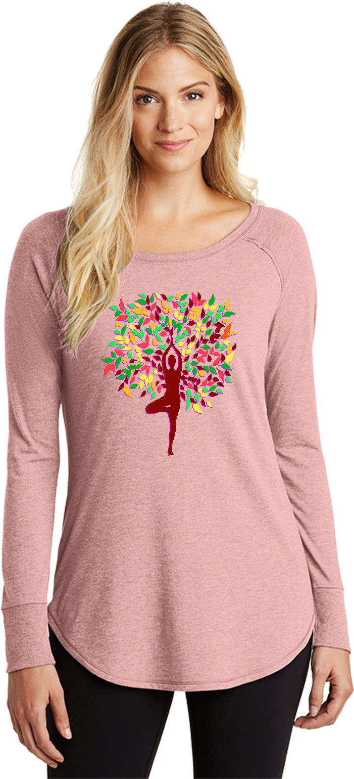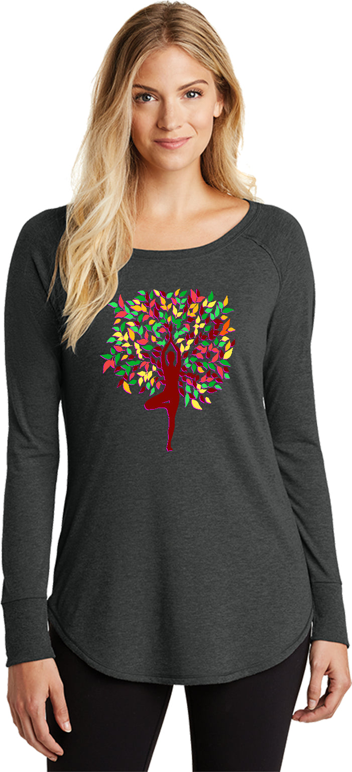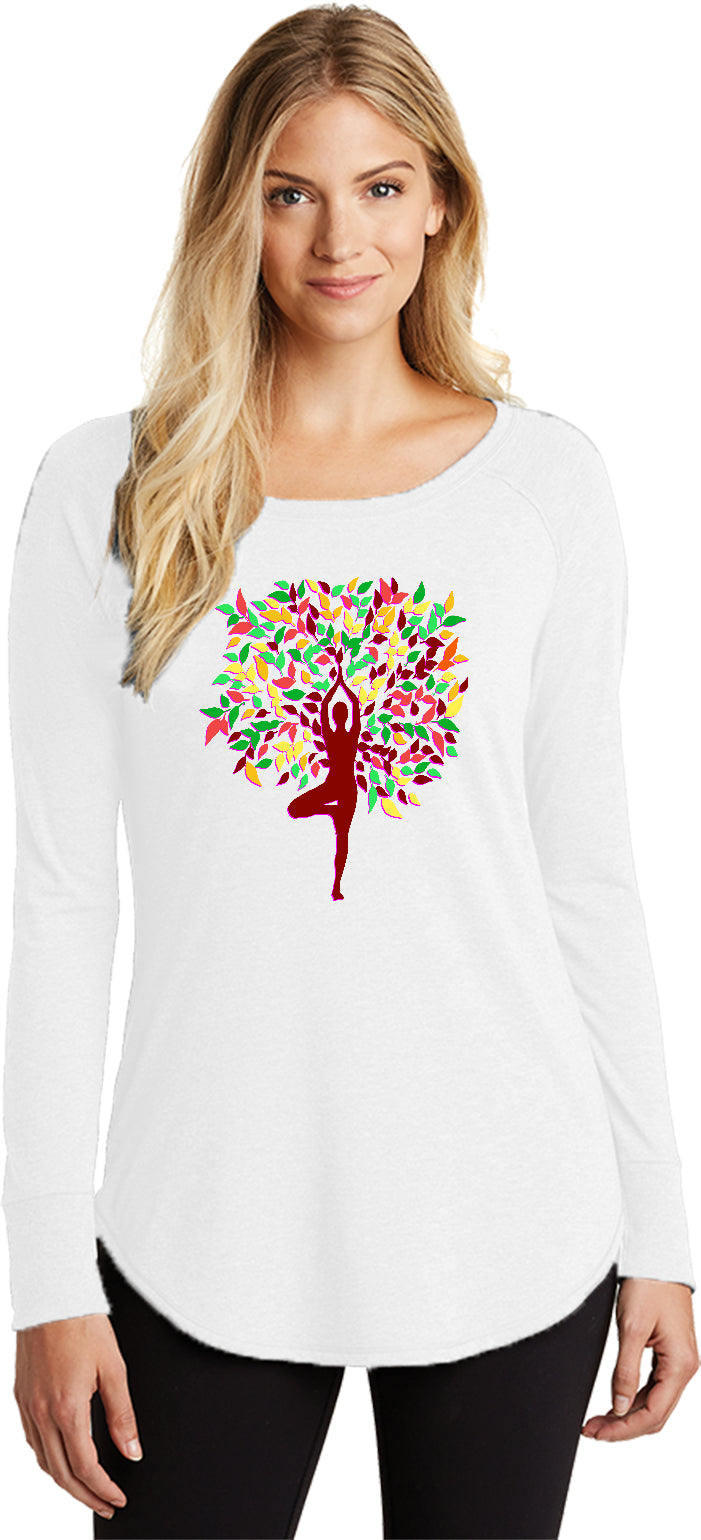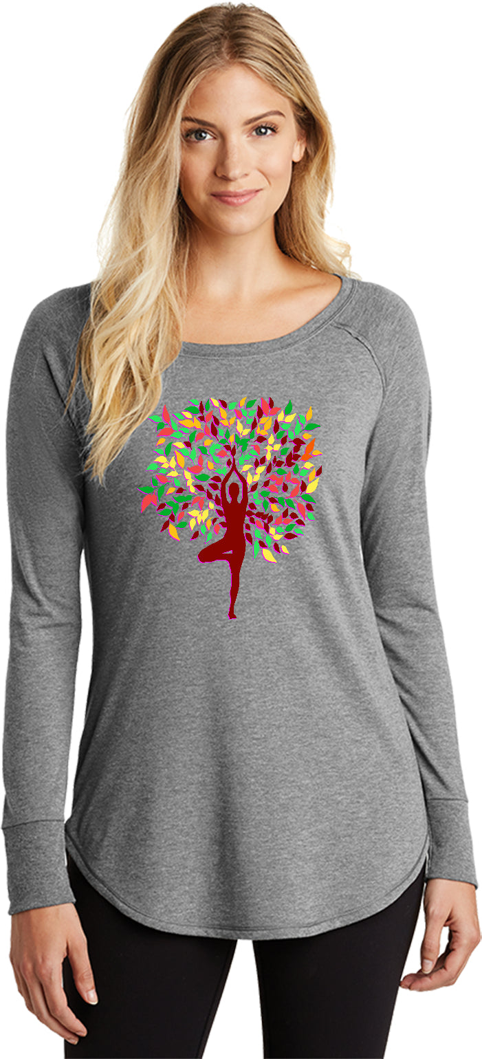 Womens Yoga T-shirt Fall Foliage Tree Pose Long Sleeve Tunic