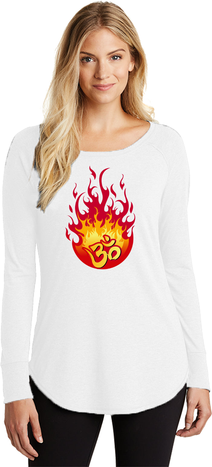 Womens Yoga T-shirt Fire OM Long Sleeve Tunic