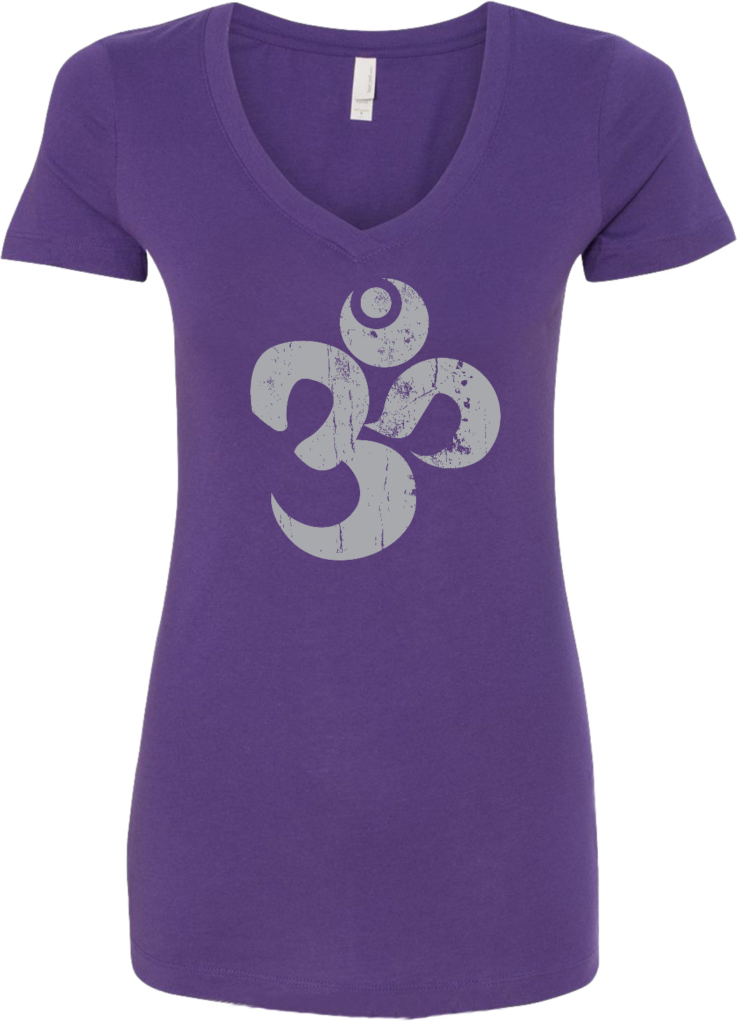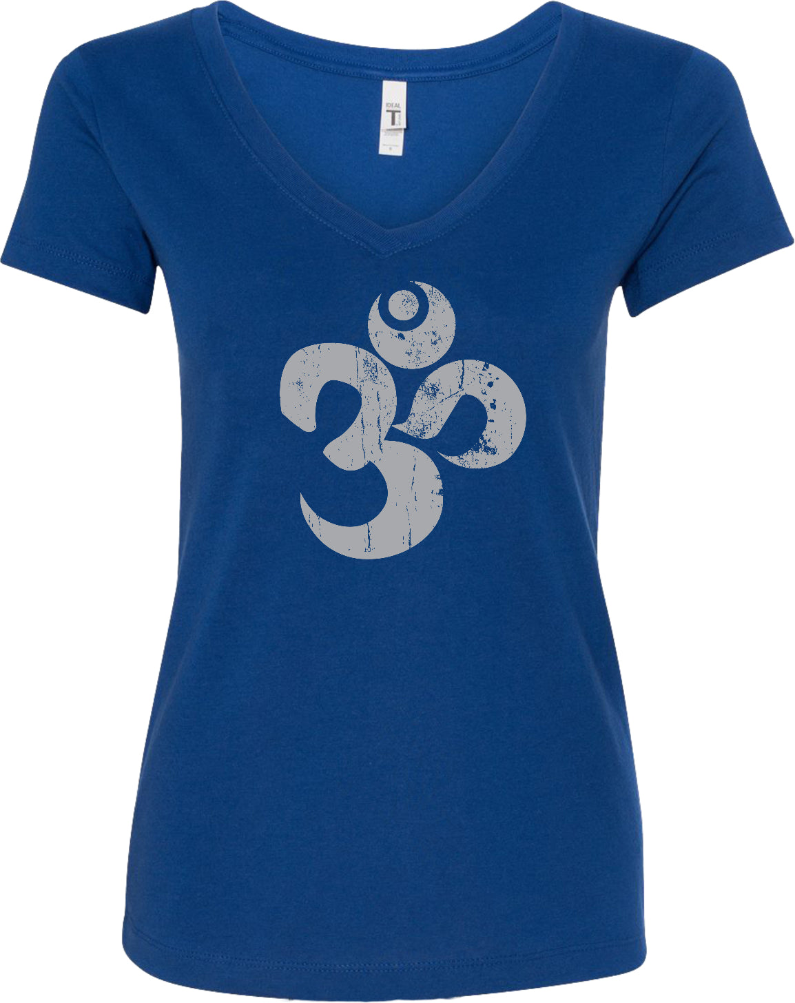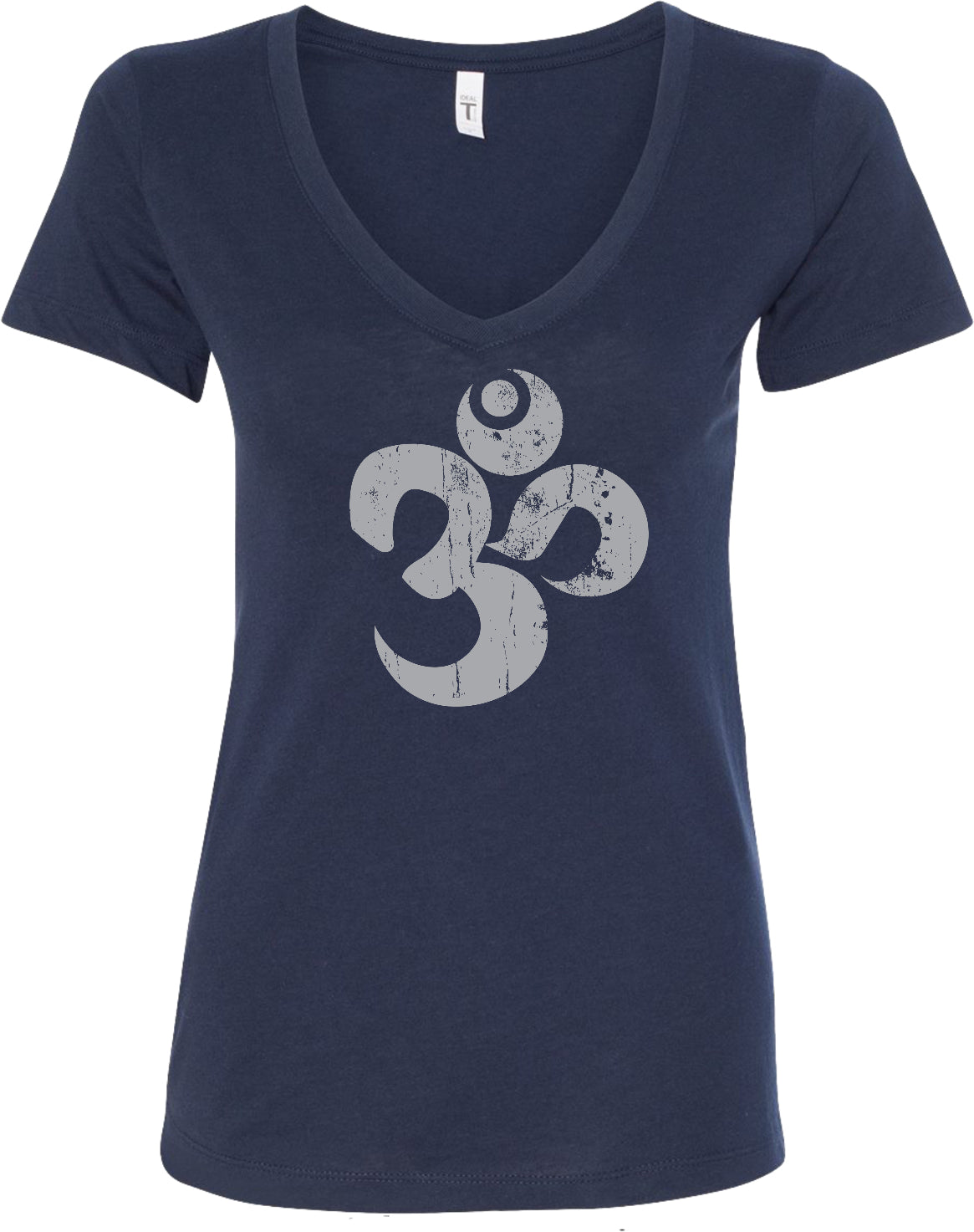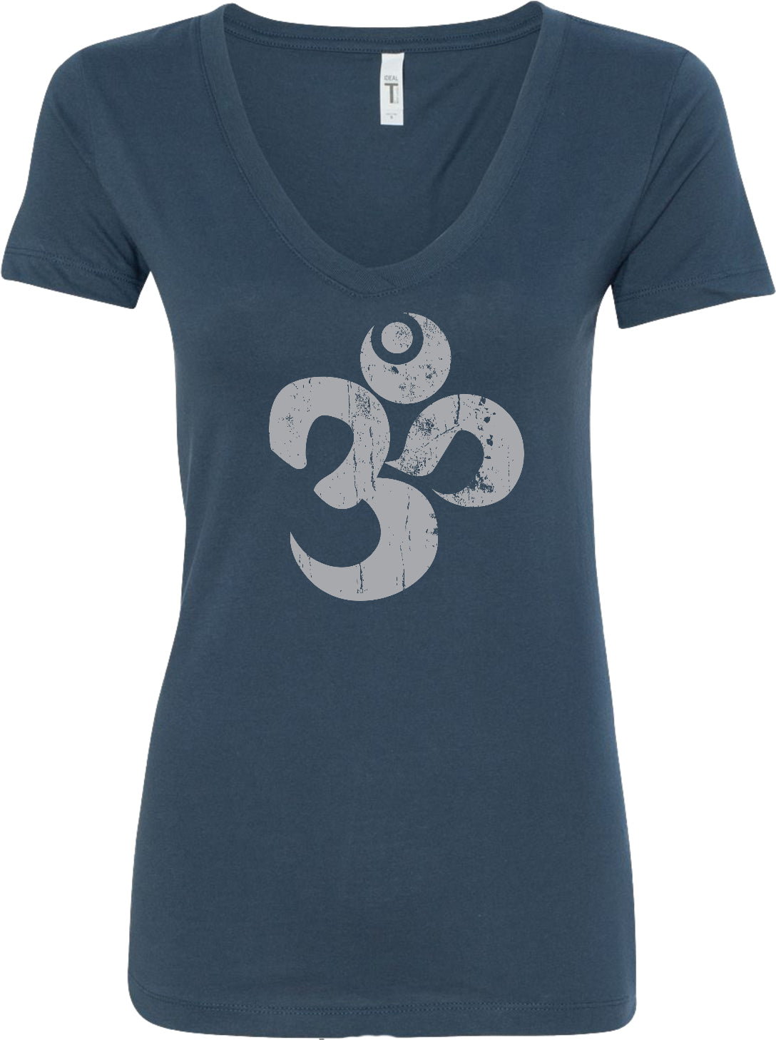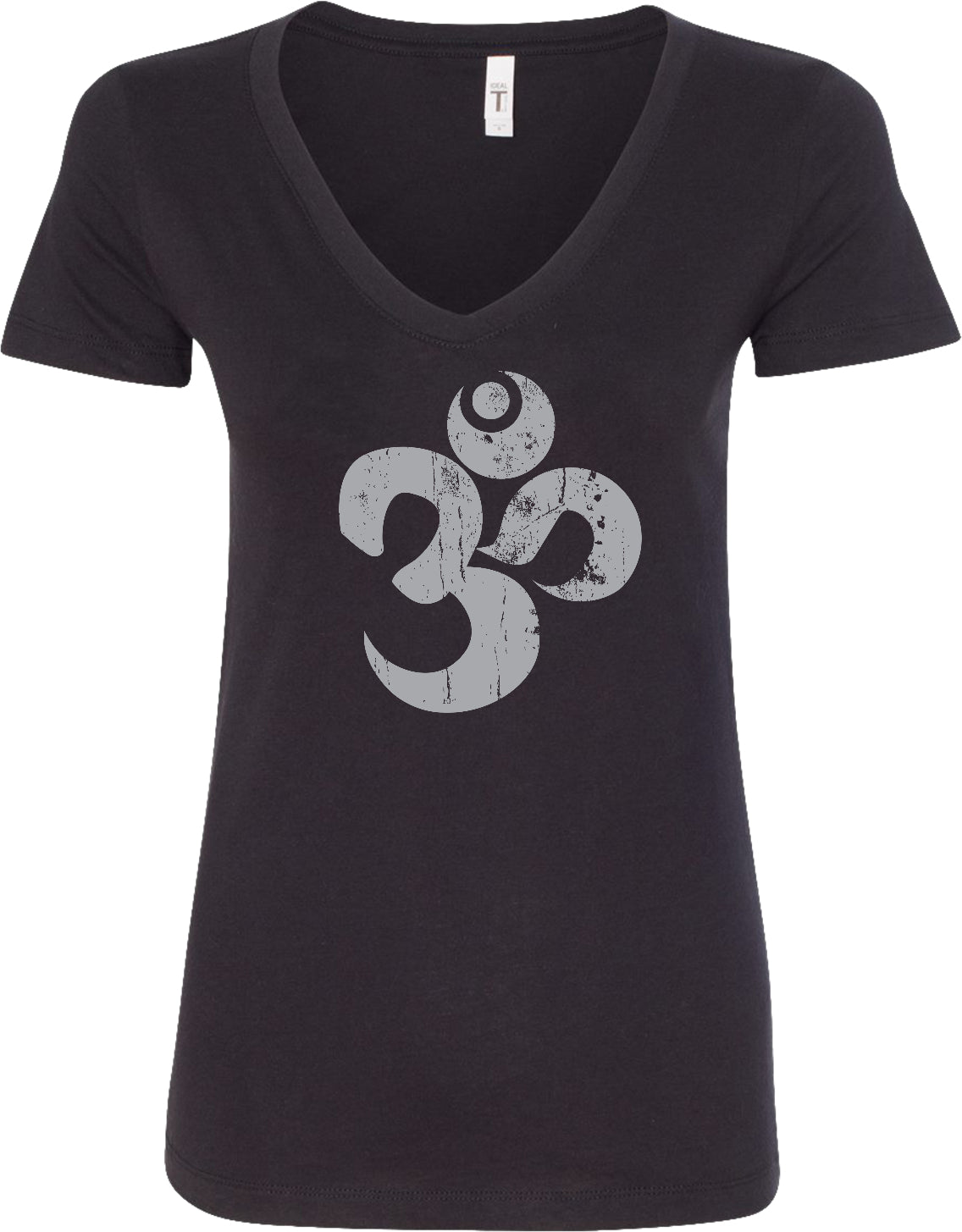 Womens Yoga T-shirt Grey Distressed Om Blended V-neck