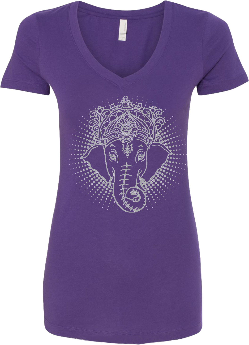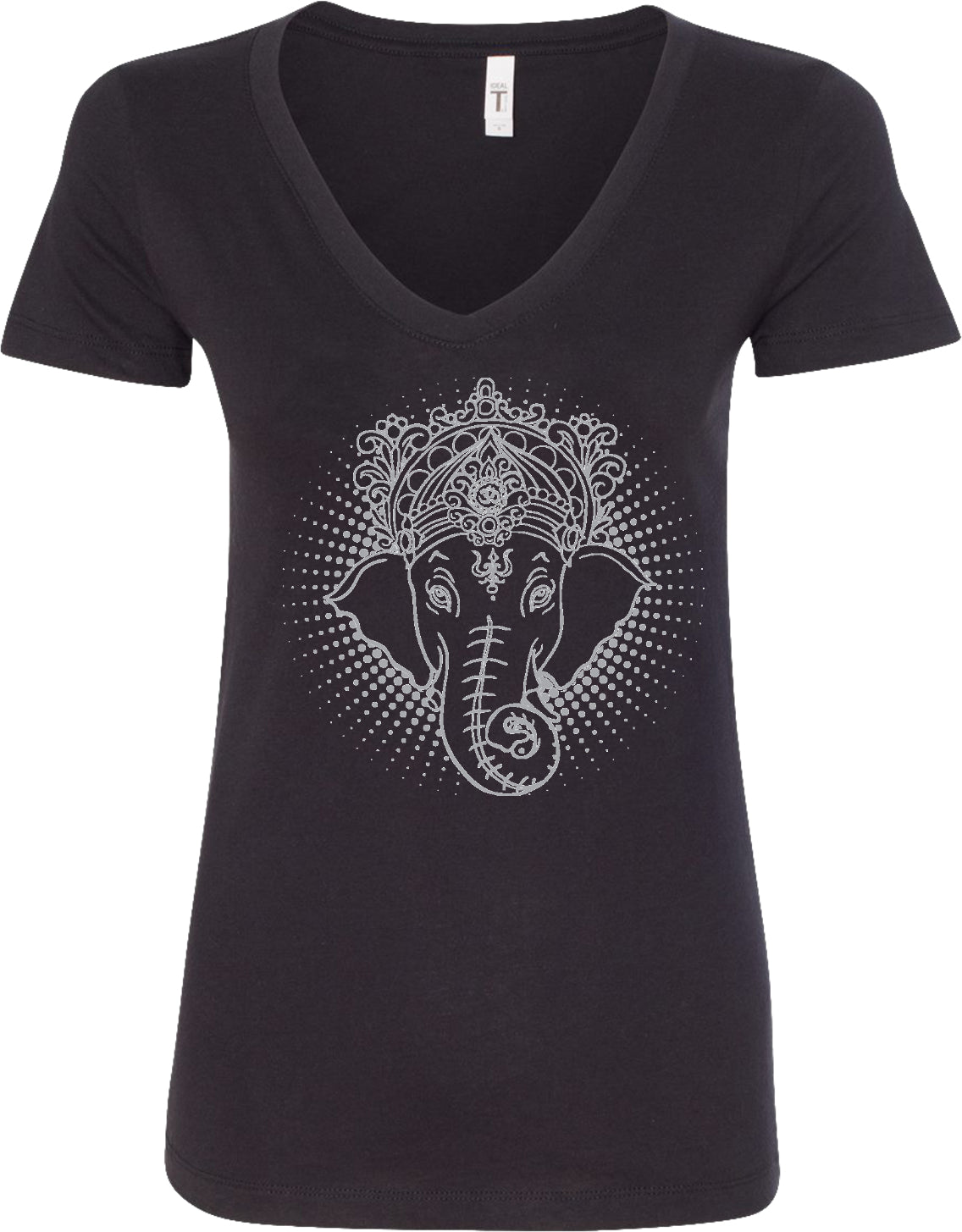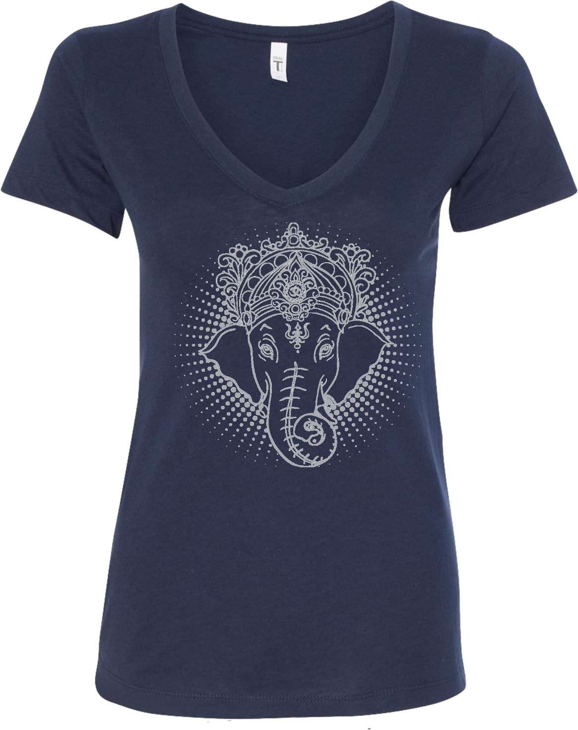 - A ladies blended v-neck t-shirt featuring a cool iconic Ganesha design