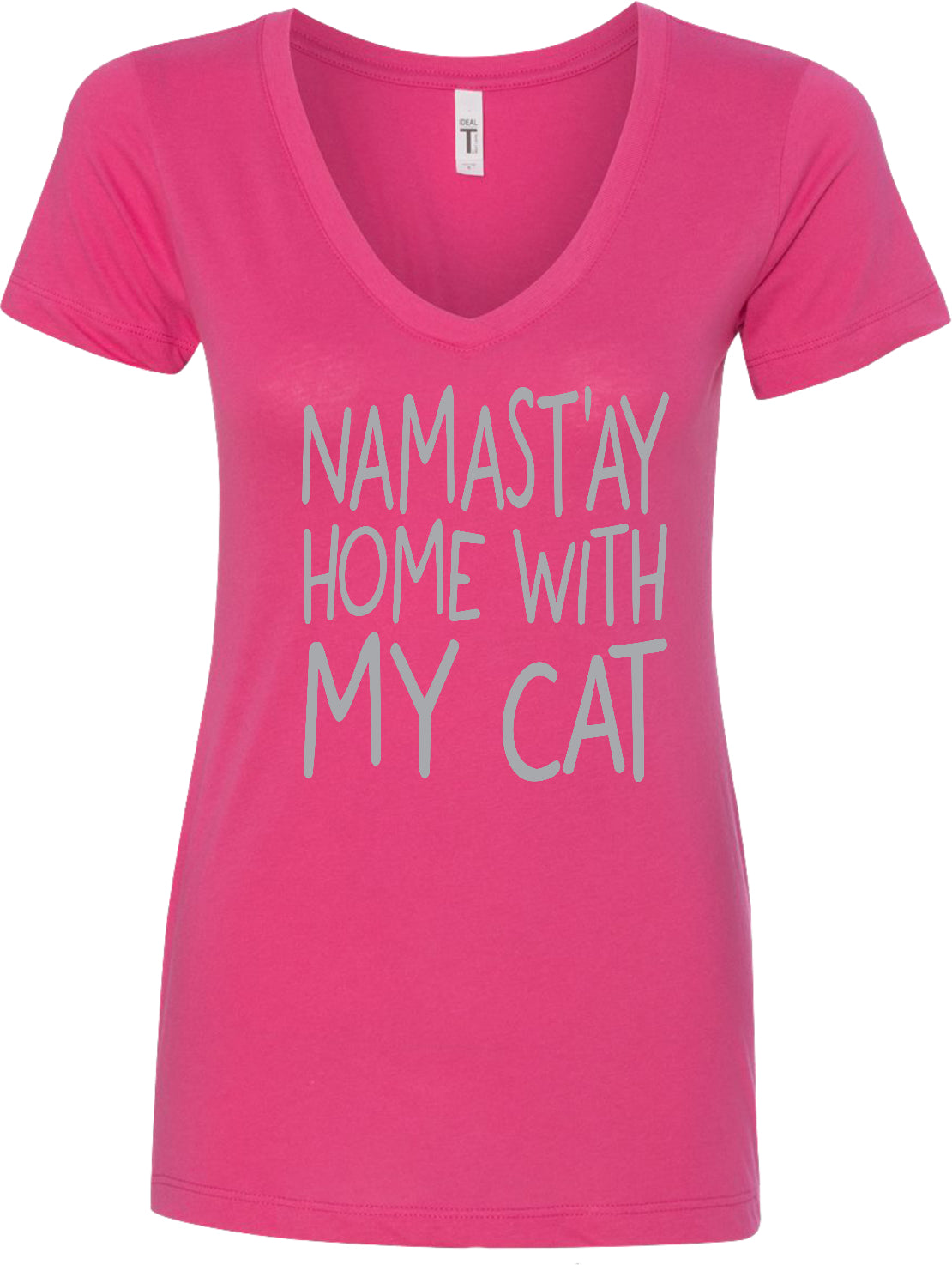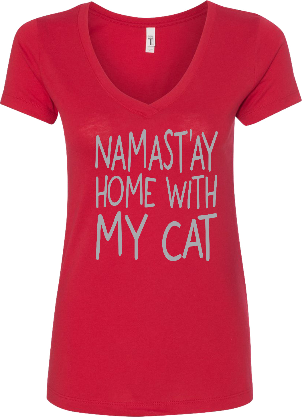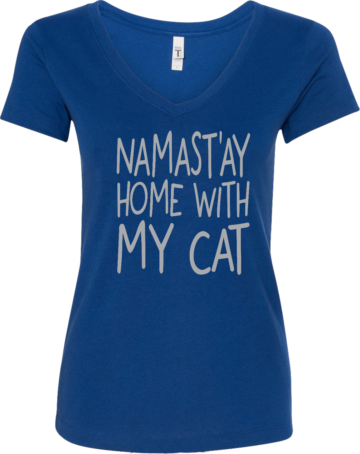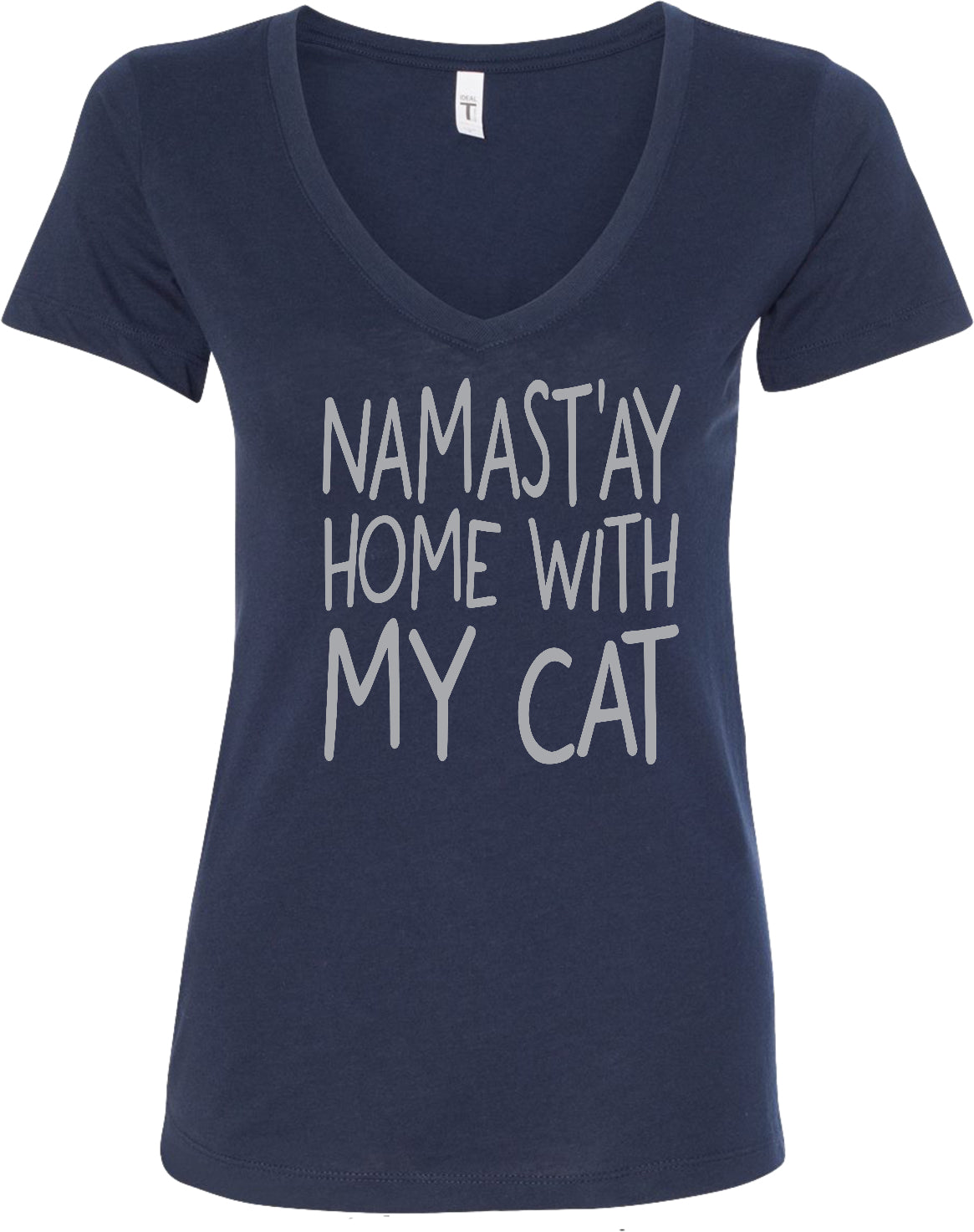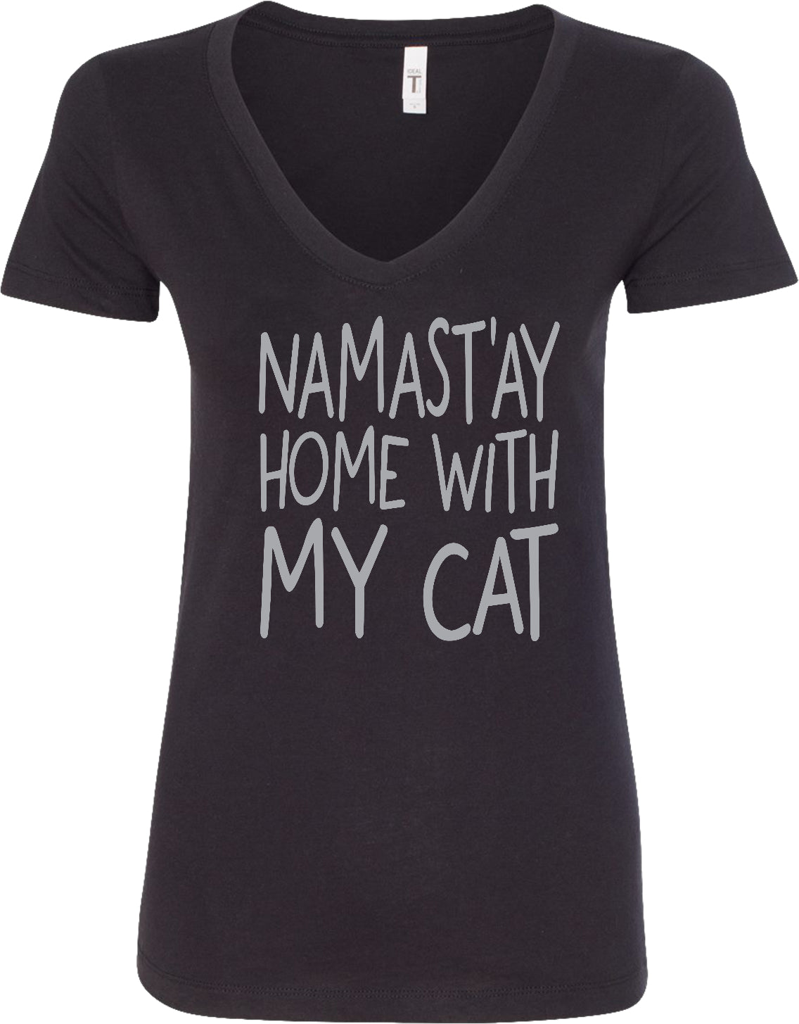 Womens Yoga T-shirt Namast'ay Home with My Cat Blended V-neck