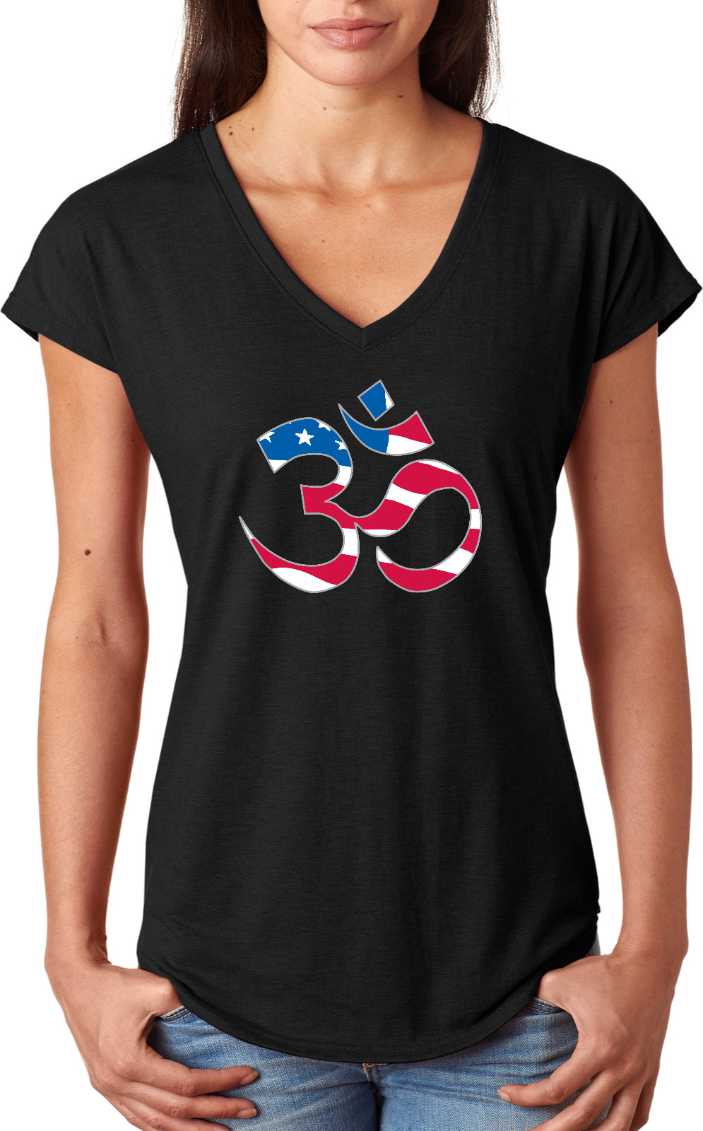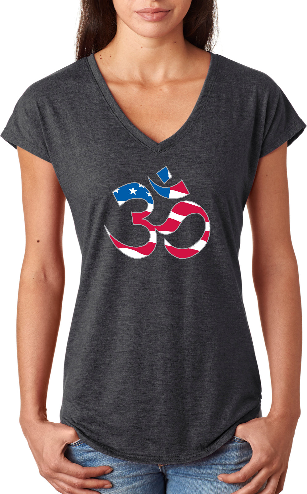 Womens Yoga T-shirt Patriotic Om Triblend V-neck