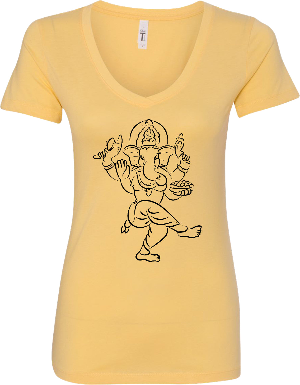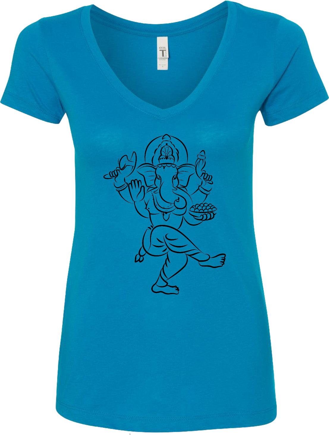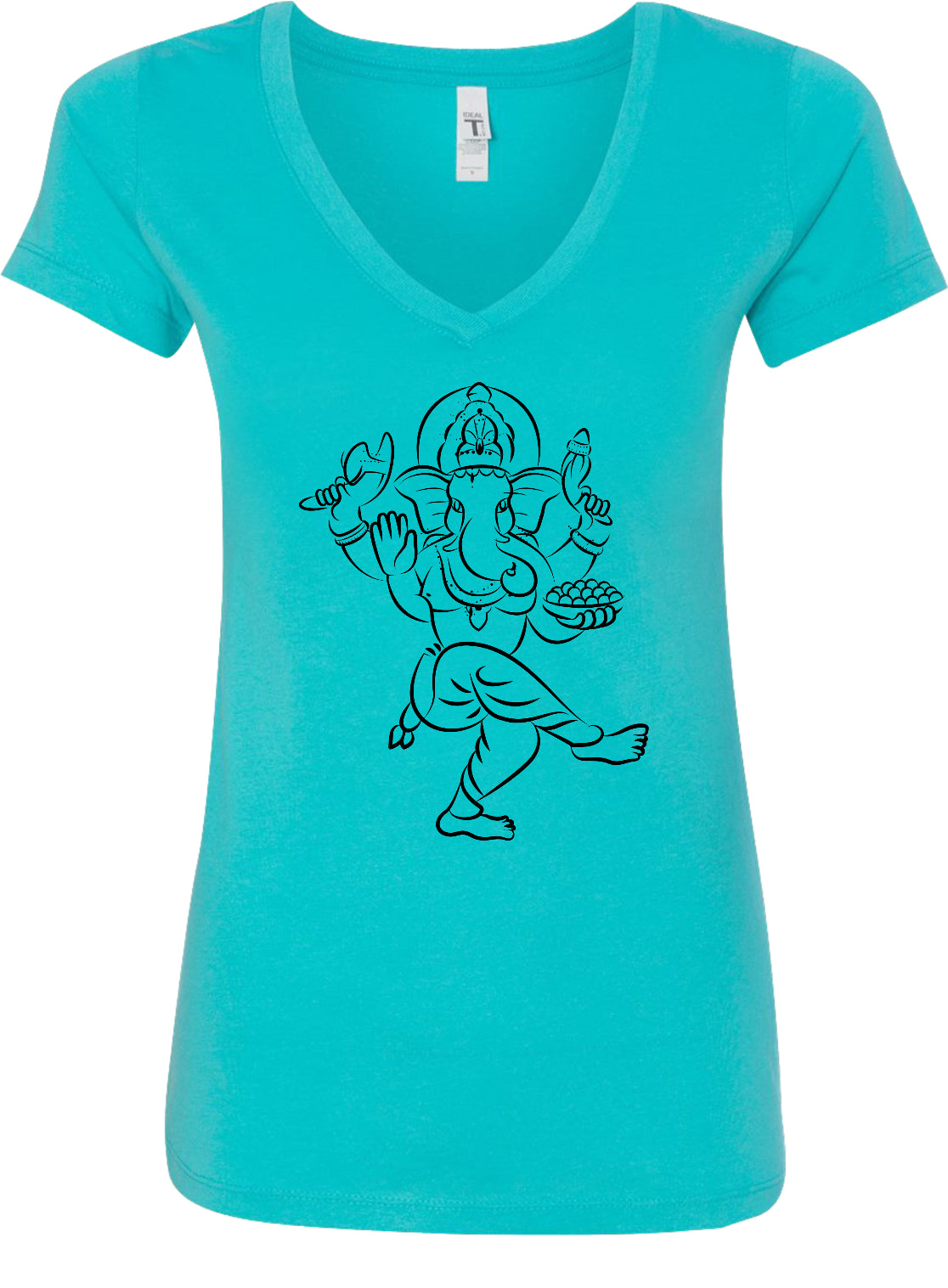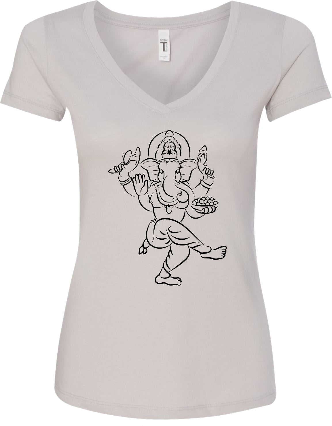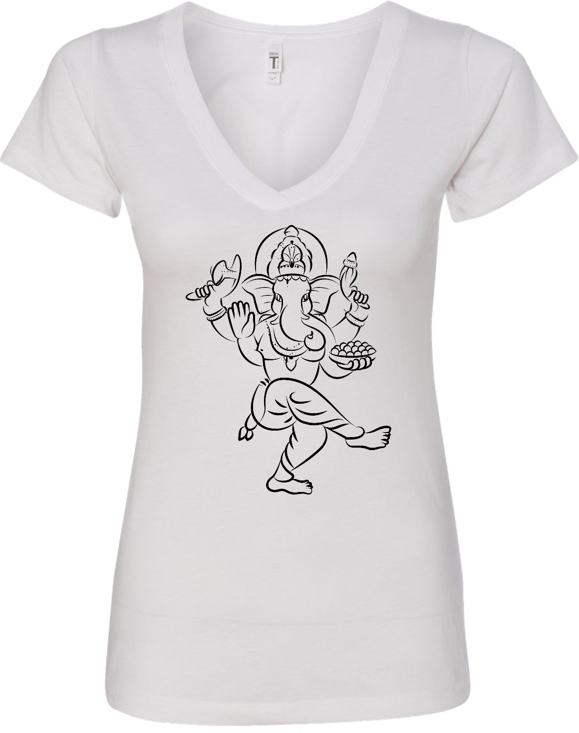 - A ladies blended v-neck t-shirt featuring a cool sketched version of Ganesha