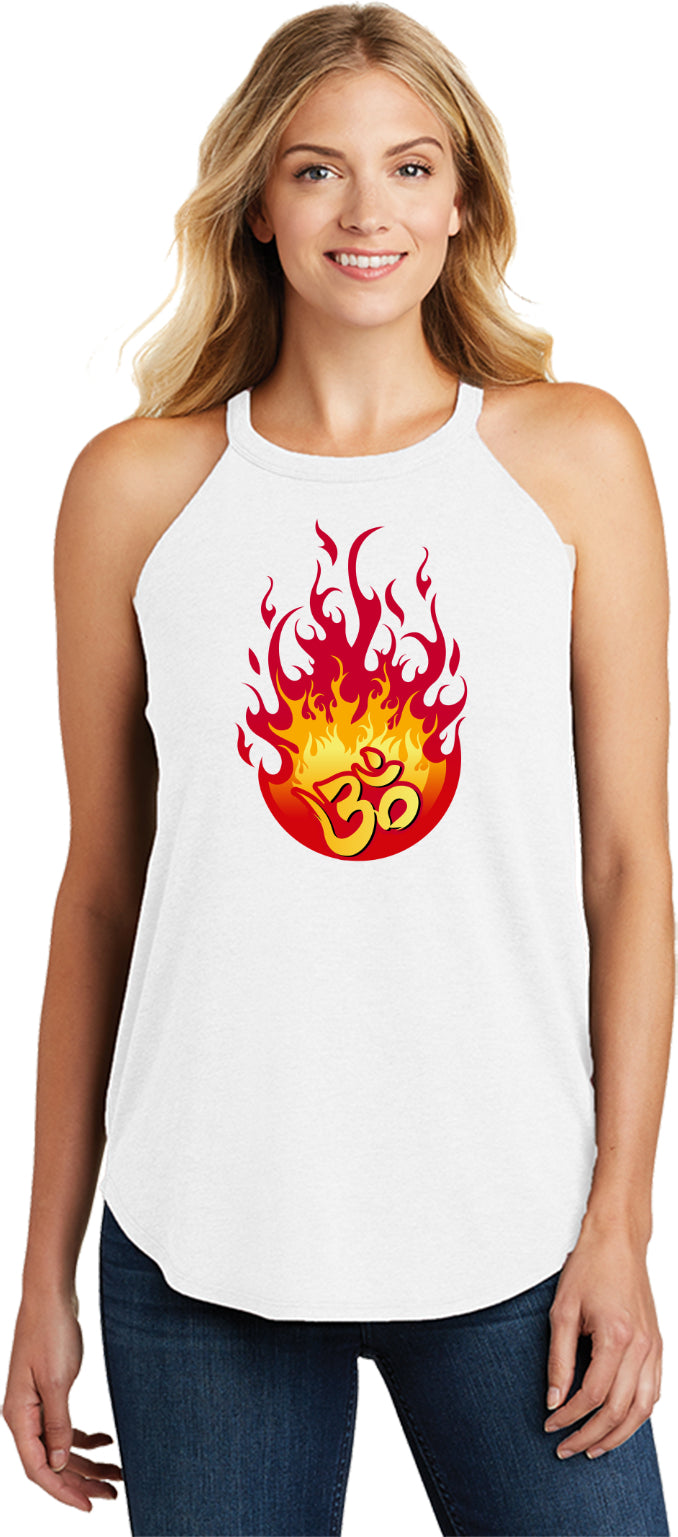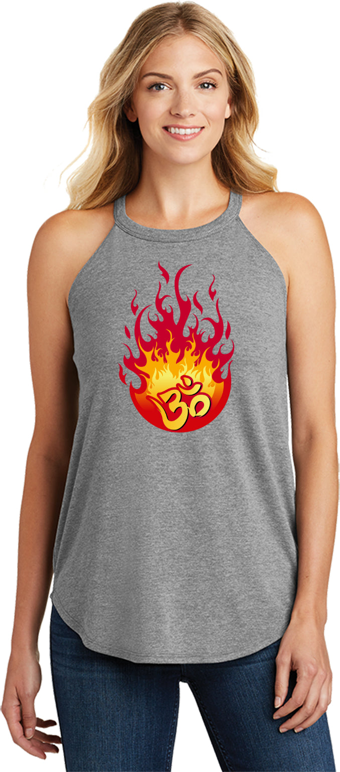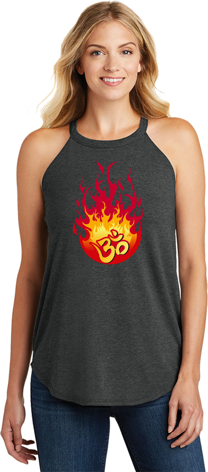 Womens Yoga Tank Top Fire OM Triblend Rocker Tanktop
