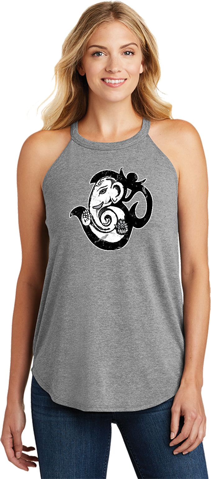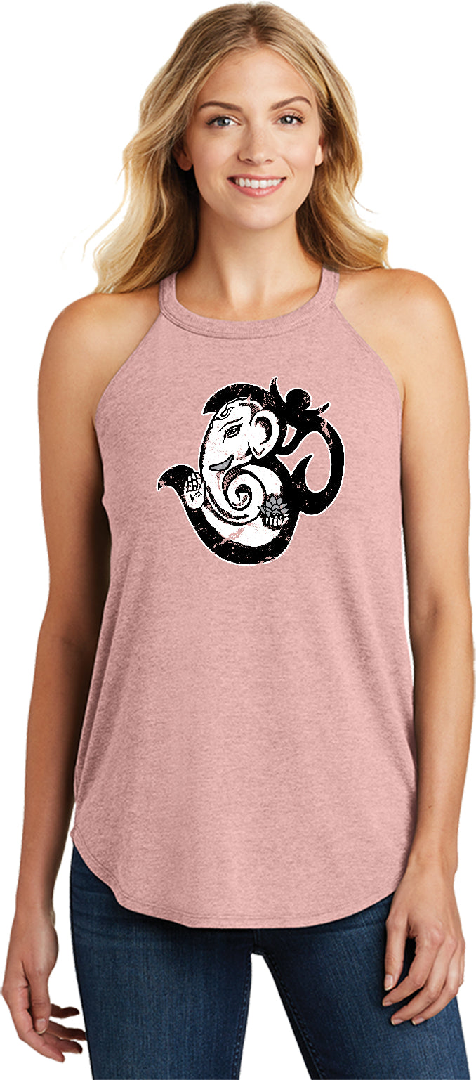 • A ladies tri blend rocker tank top featuring a shining version of the sacred OM symbol joined with the wise Ganesha