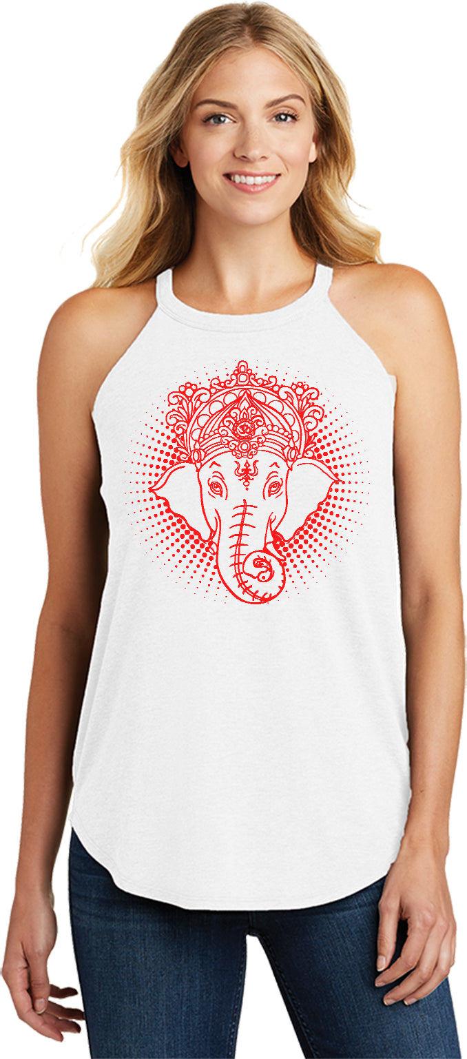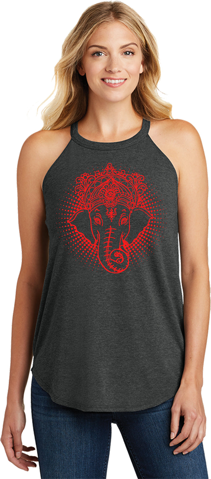 - A ladies tri blend rocker tank top featuring the wise Ganesha