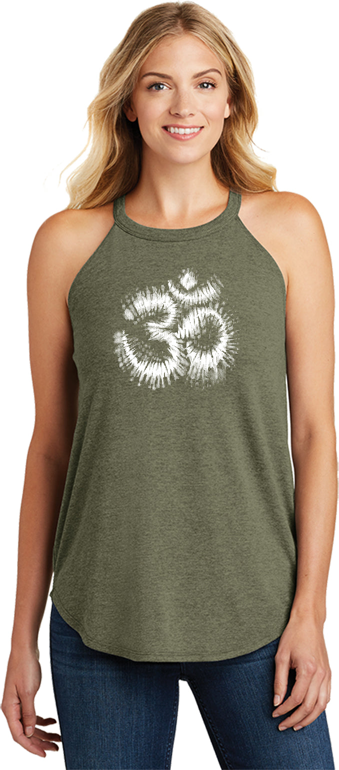 Womens Yoga Tank Top Tie Dye Om Triblend Rocker Tanktop