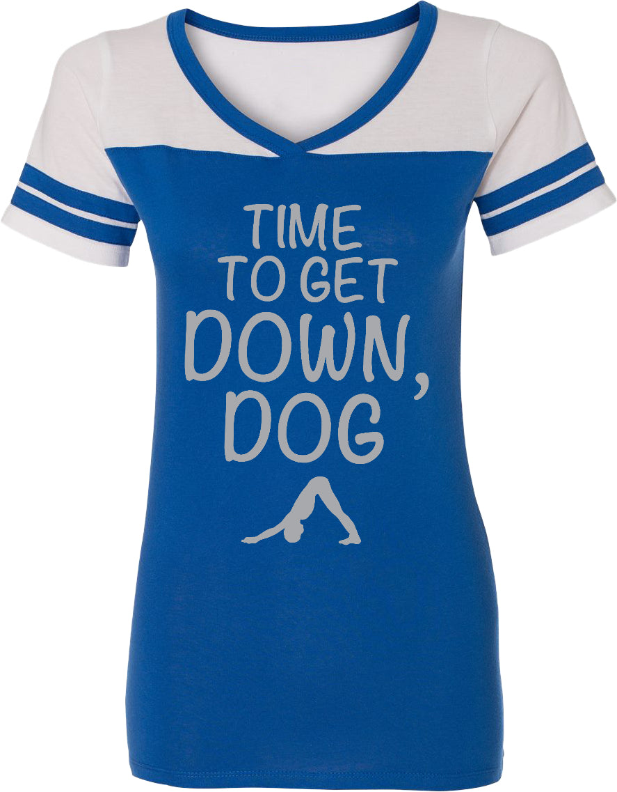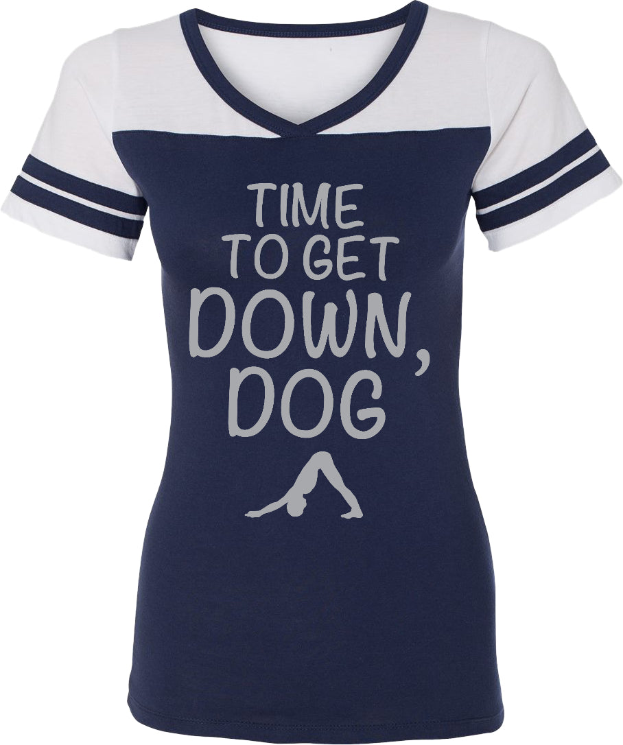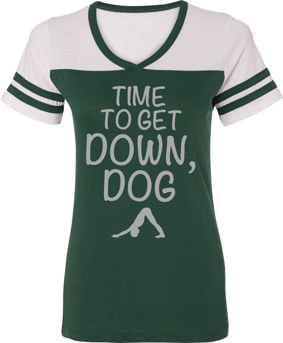 - A ladies powder puff t-shirt featuring it's time to get down, dog