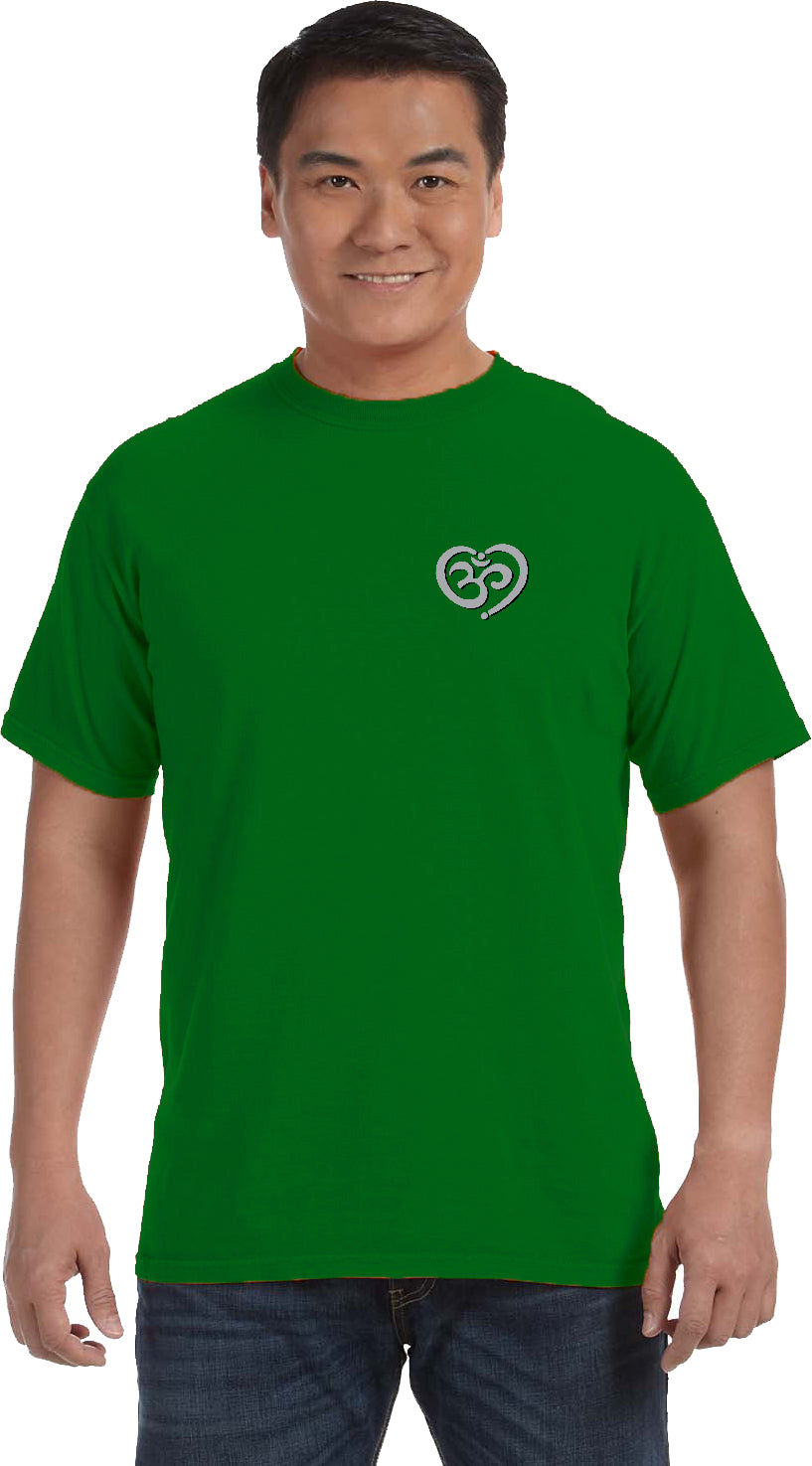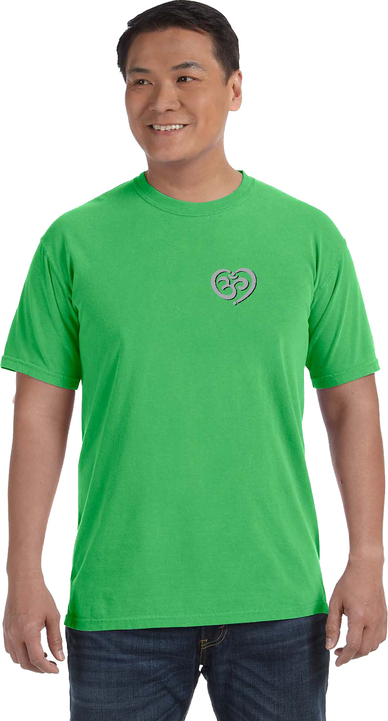 - A men's pigment dyed t-shirt featuring the om heart pocket print
