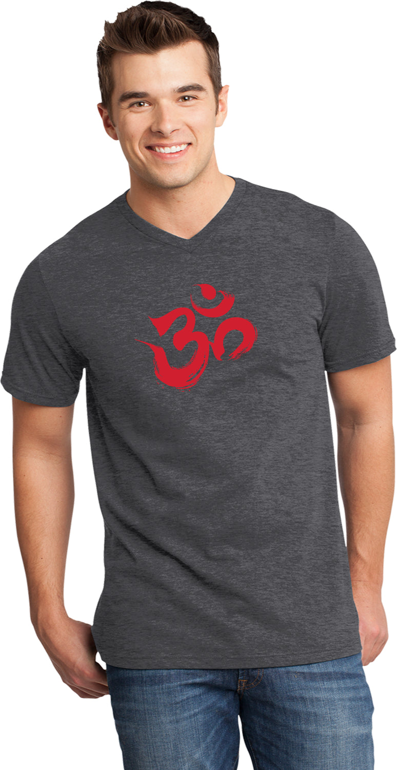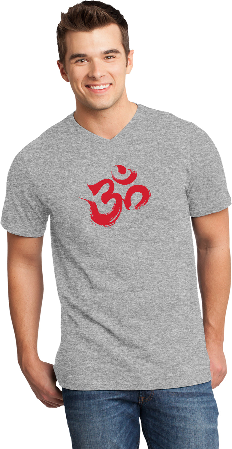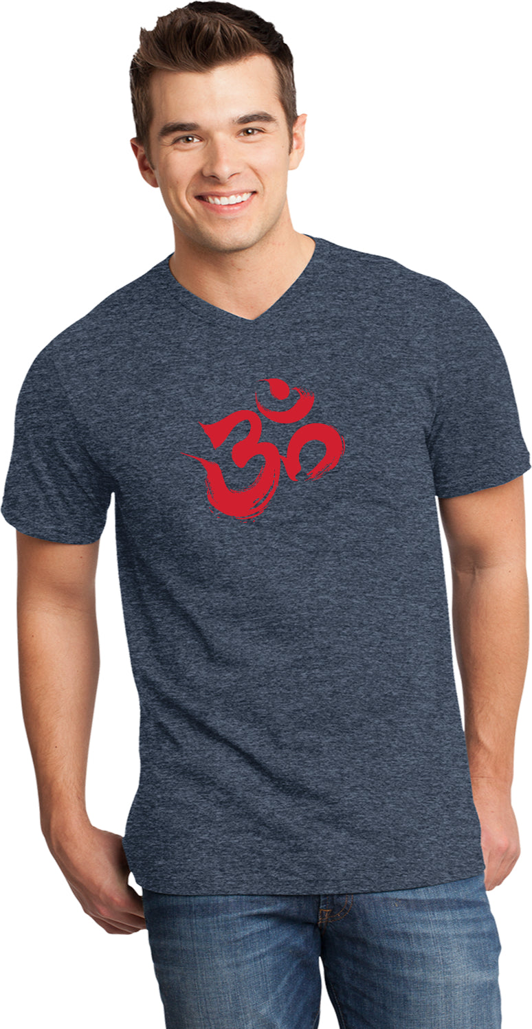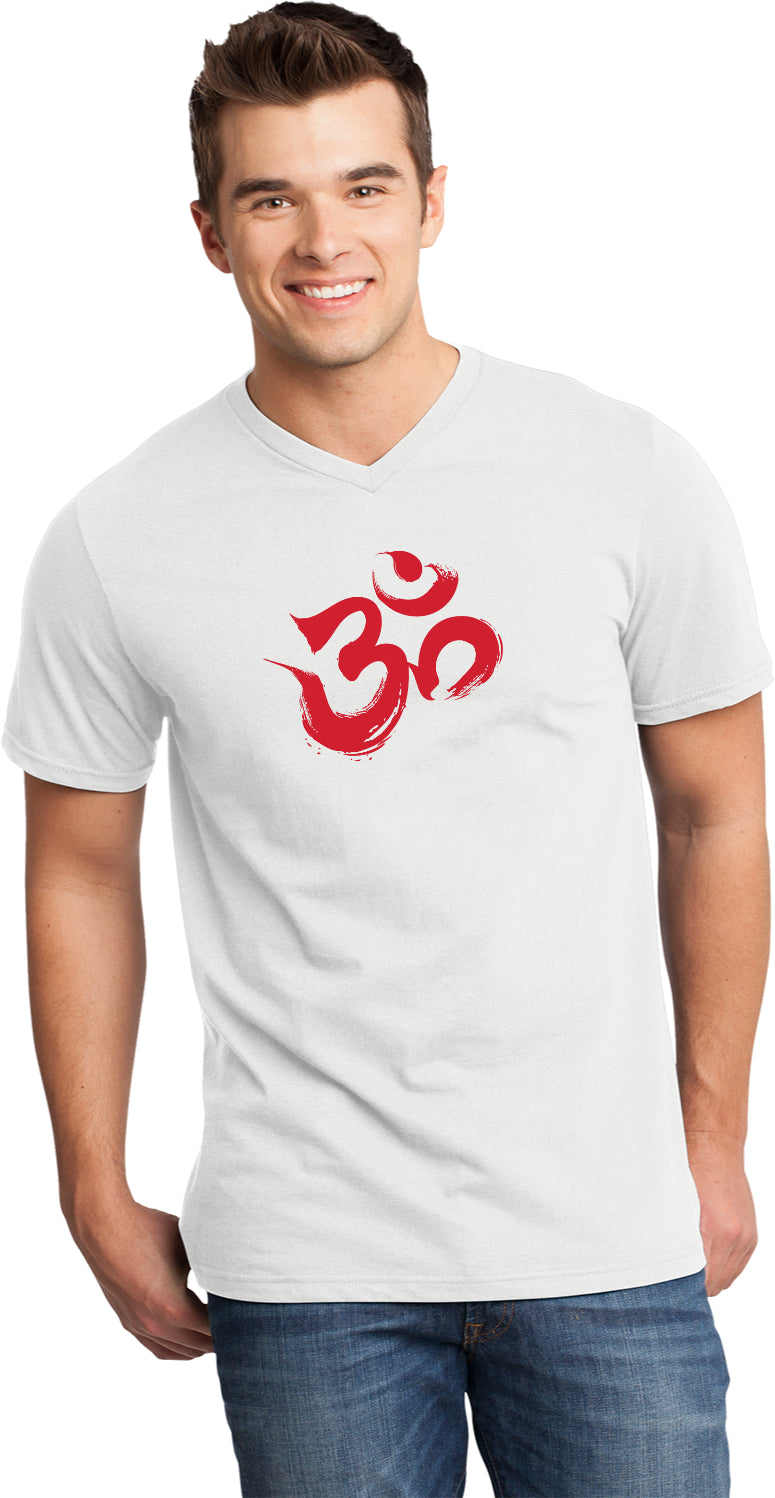- A men's important v-neck t-shirt featuring the aum symbol in a brushstroke formation